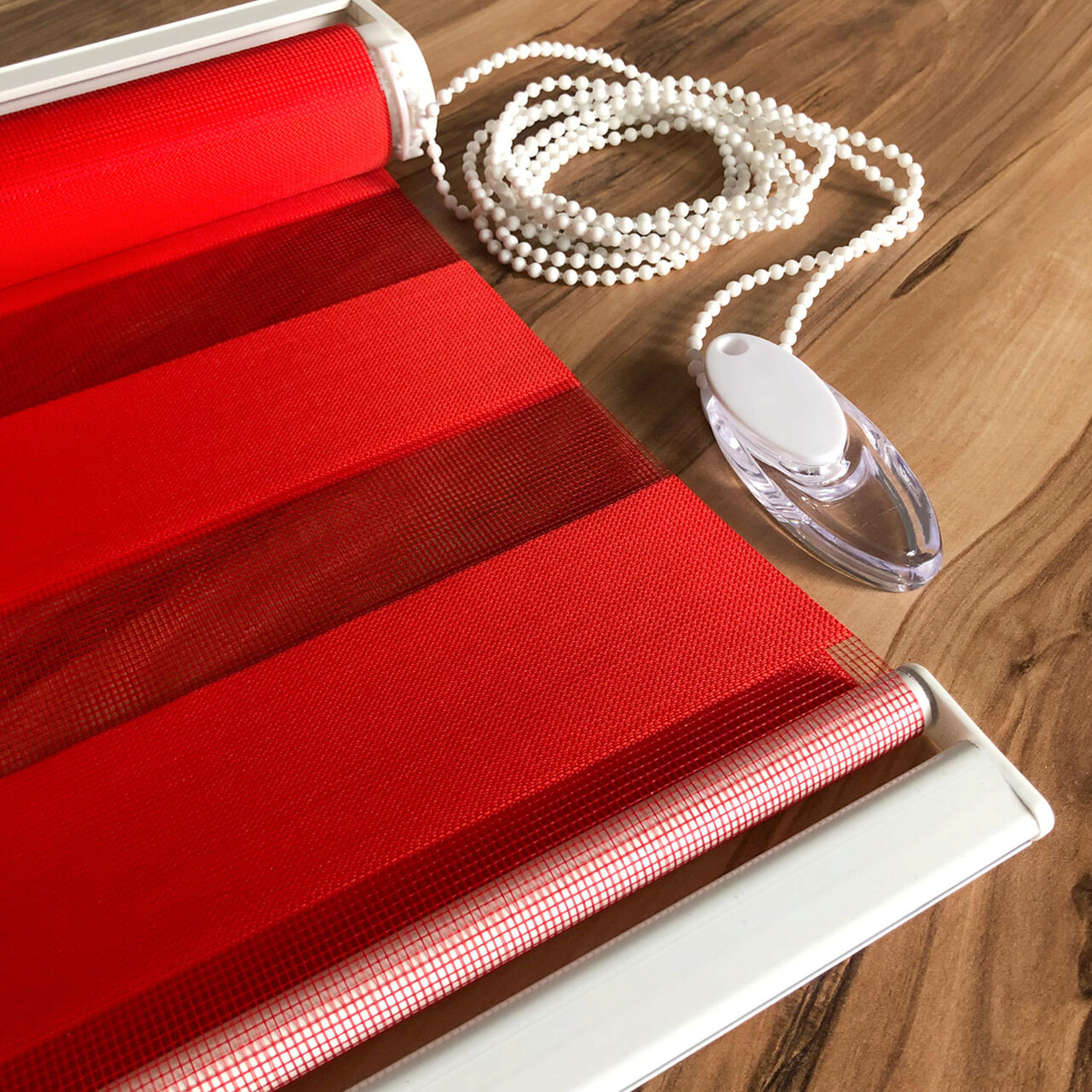 Jaluzea rulou zebra / roleta textila, Lizbon Day & Night, 70x200 cm, poliester, rosu