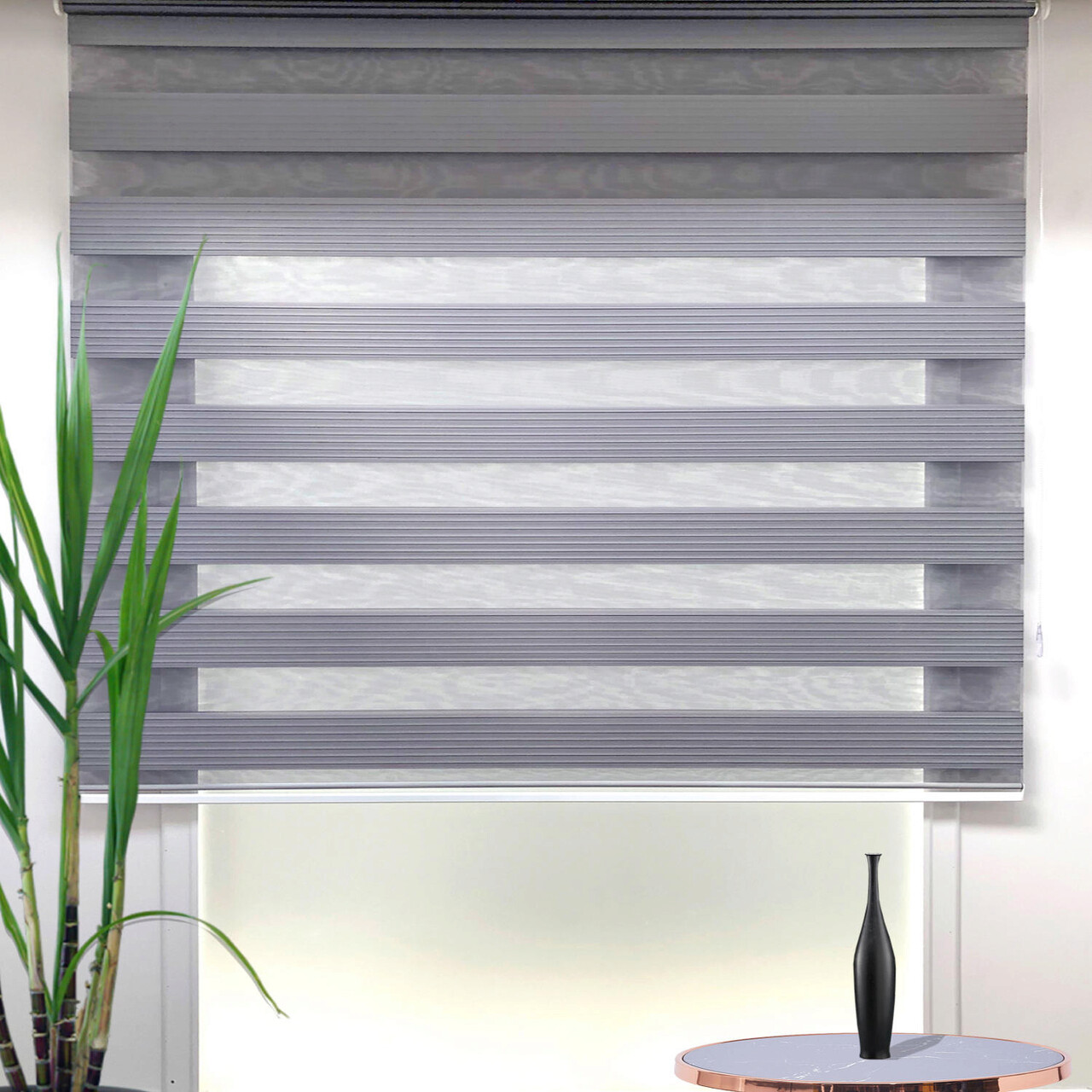 Jaluzea rulou zebra / roleta textila, Pliseli Day & Night, 60x260 cm, poliester, gri