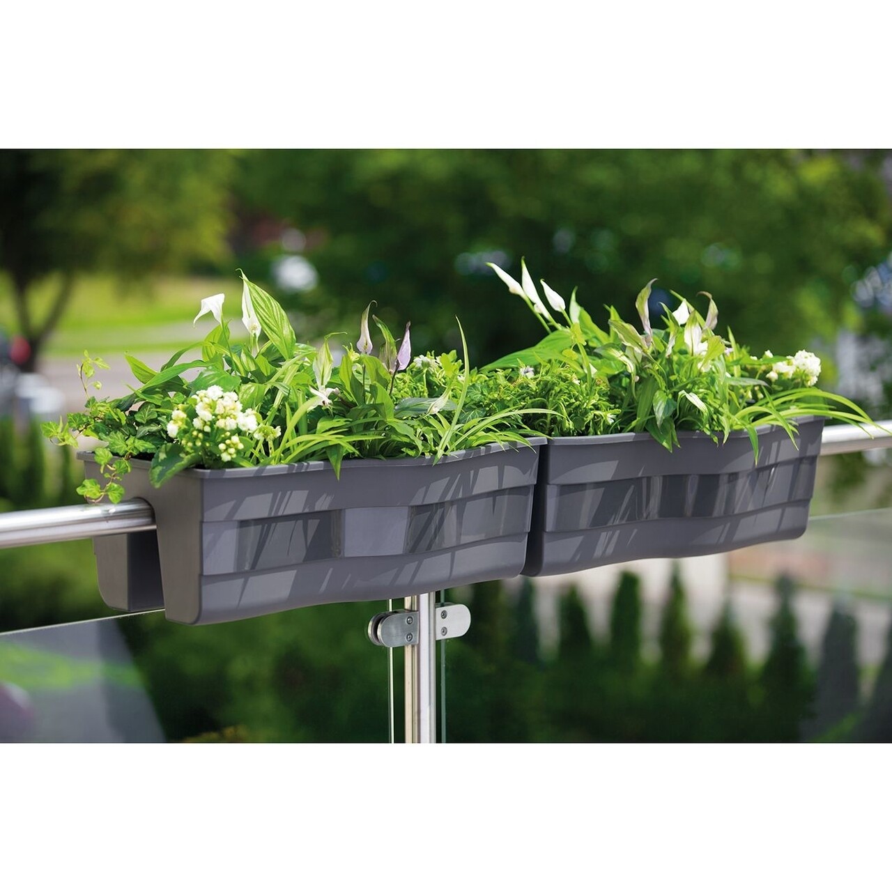 Jardiniera se poate fixa pe o balustrada cu latimea de 5 cm.