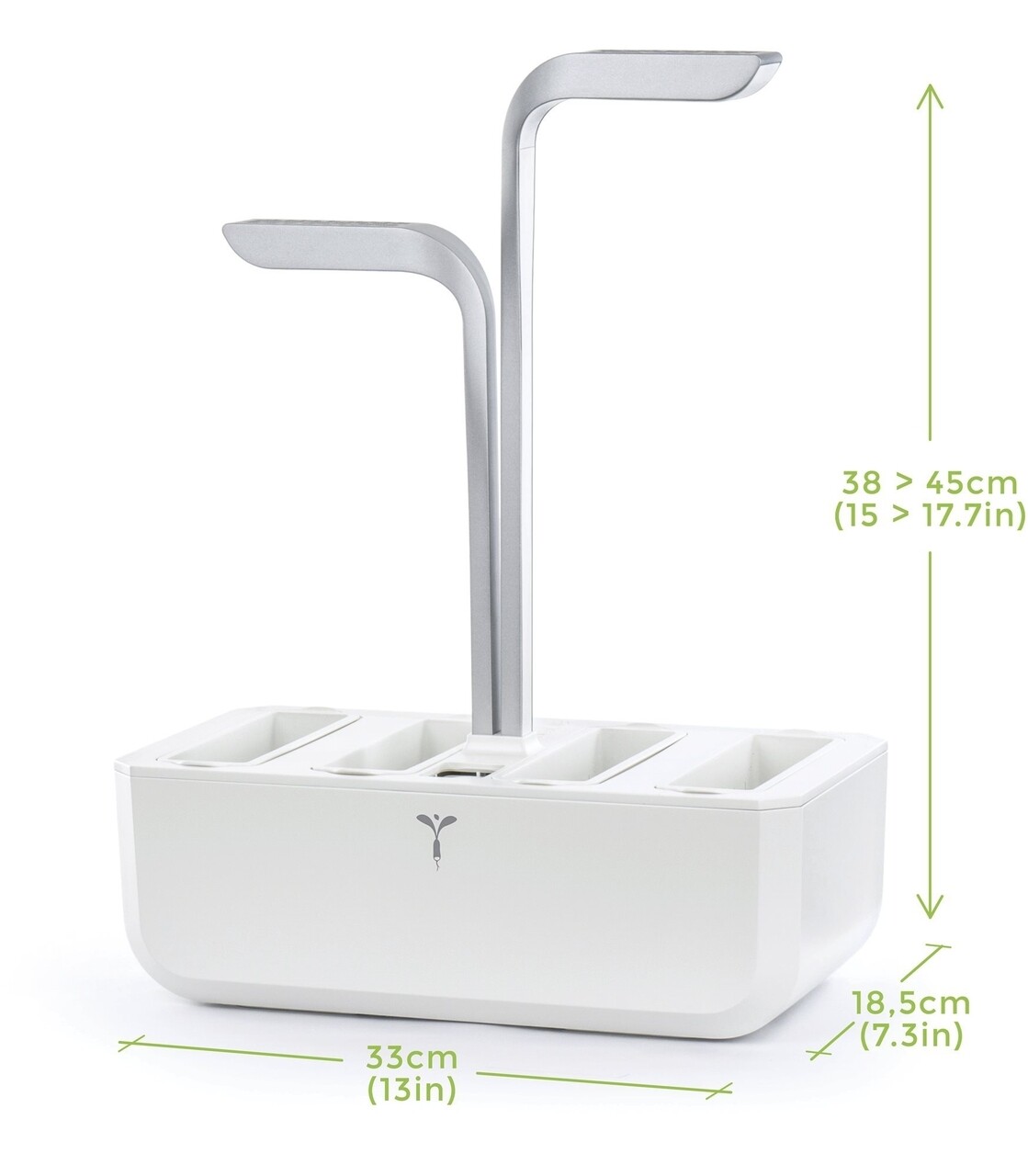 Ambele corpuri de iluminare pot fi ajustate in mod independent unul fata de celalalt astfel incat acestea sa permita plantelor sa se inalte. De asemenea, designul si dimensiunile au fost atent studiate pentru ca jardinierele marca Veritable sa incapa cu usurinta pe blaturile de lucru si sub corpurile de mobilier ce se regasesc in majoritatea bucatariilor.