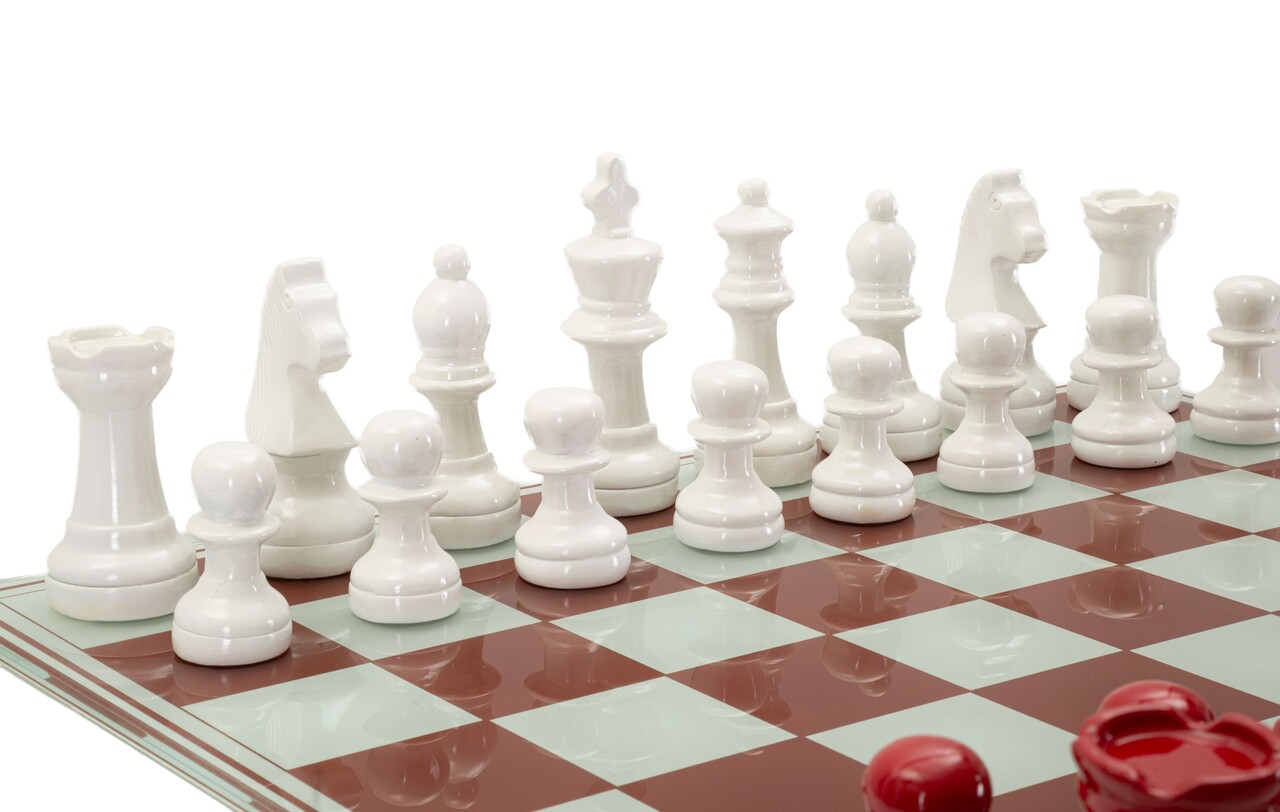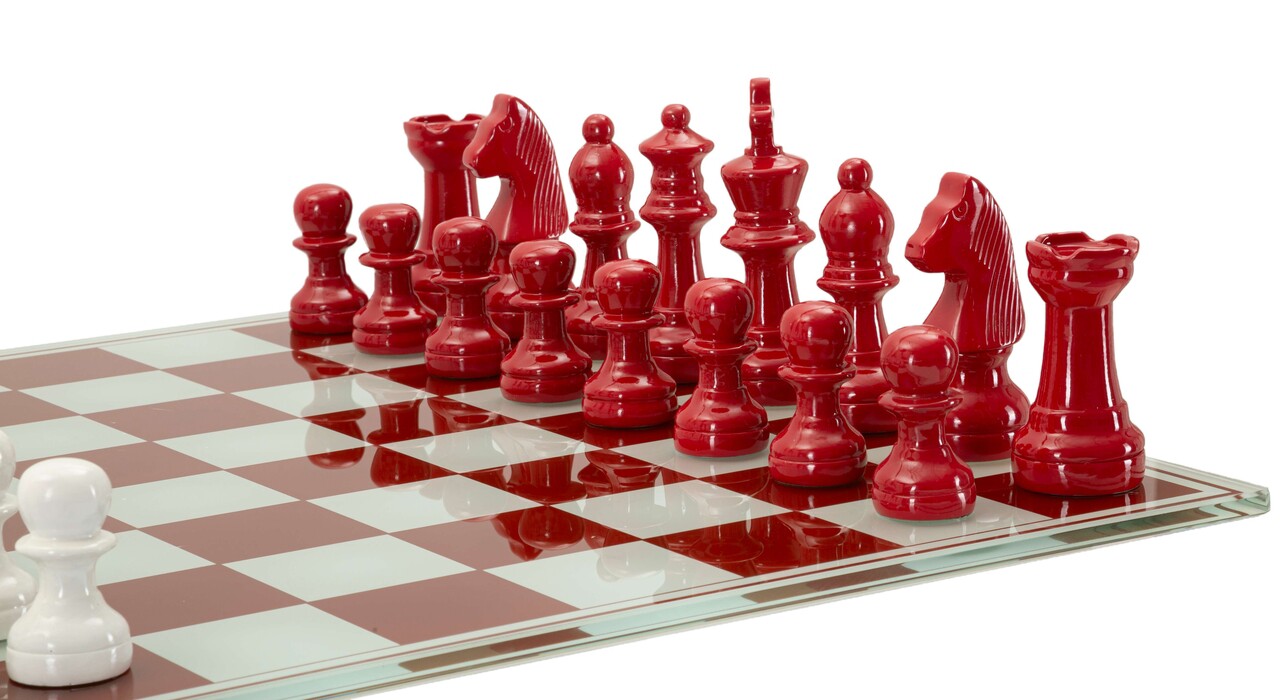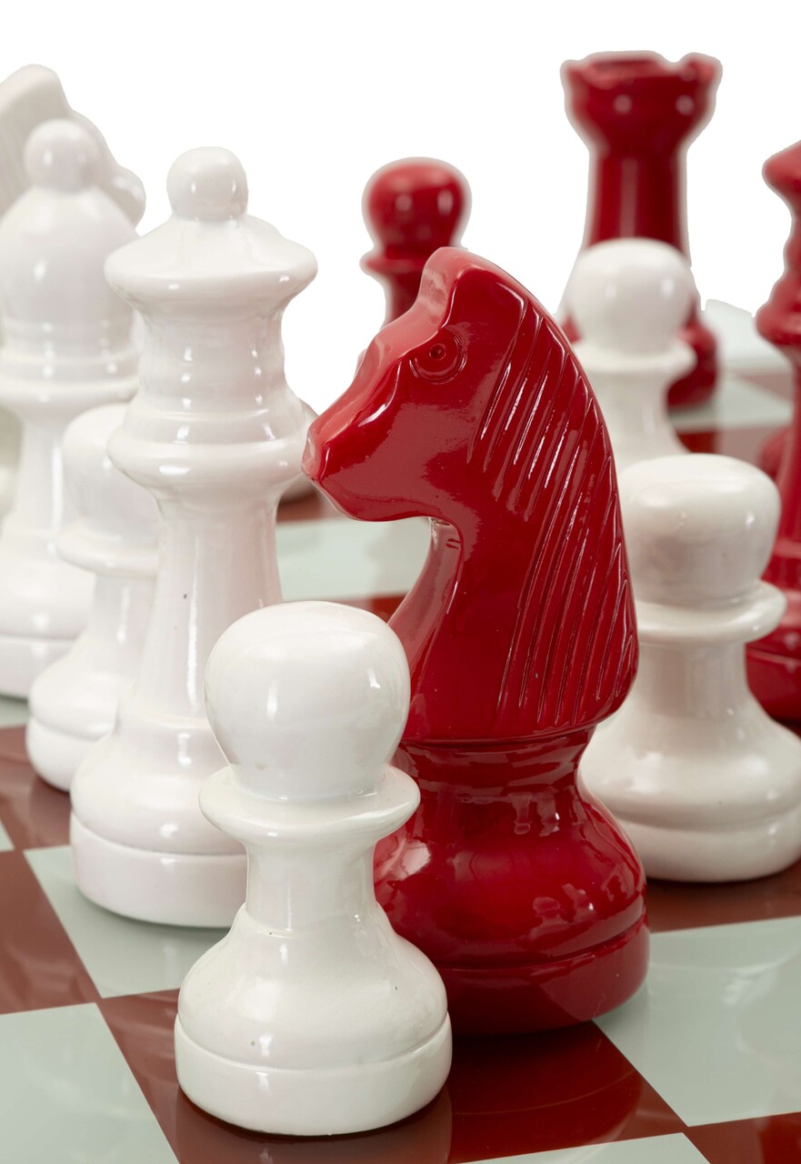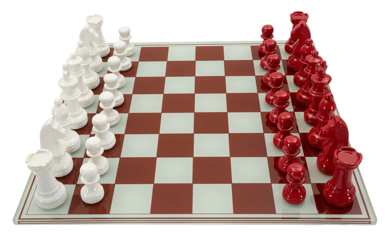Joc de sah Red/White Chess, Mauro Ferretti, 61x61x14 cm, polirasina/sticla, multicolor