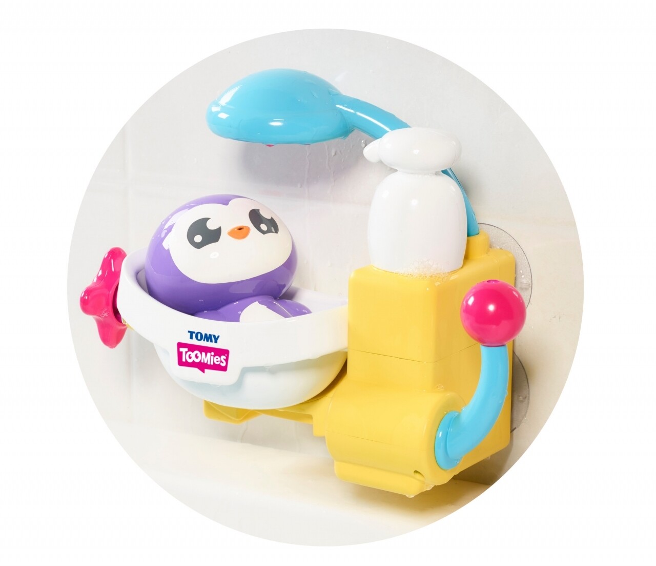 Umpleti rezervorul cu apa si gel de dus. Imi place sa ma joc in spuma. Trageti maneta si acopera-ma cu spuma. Rotiti butonul pentru a cadea in cada si pentru a stropi.