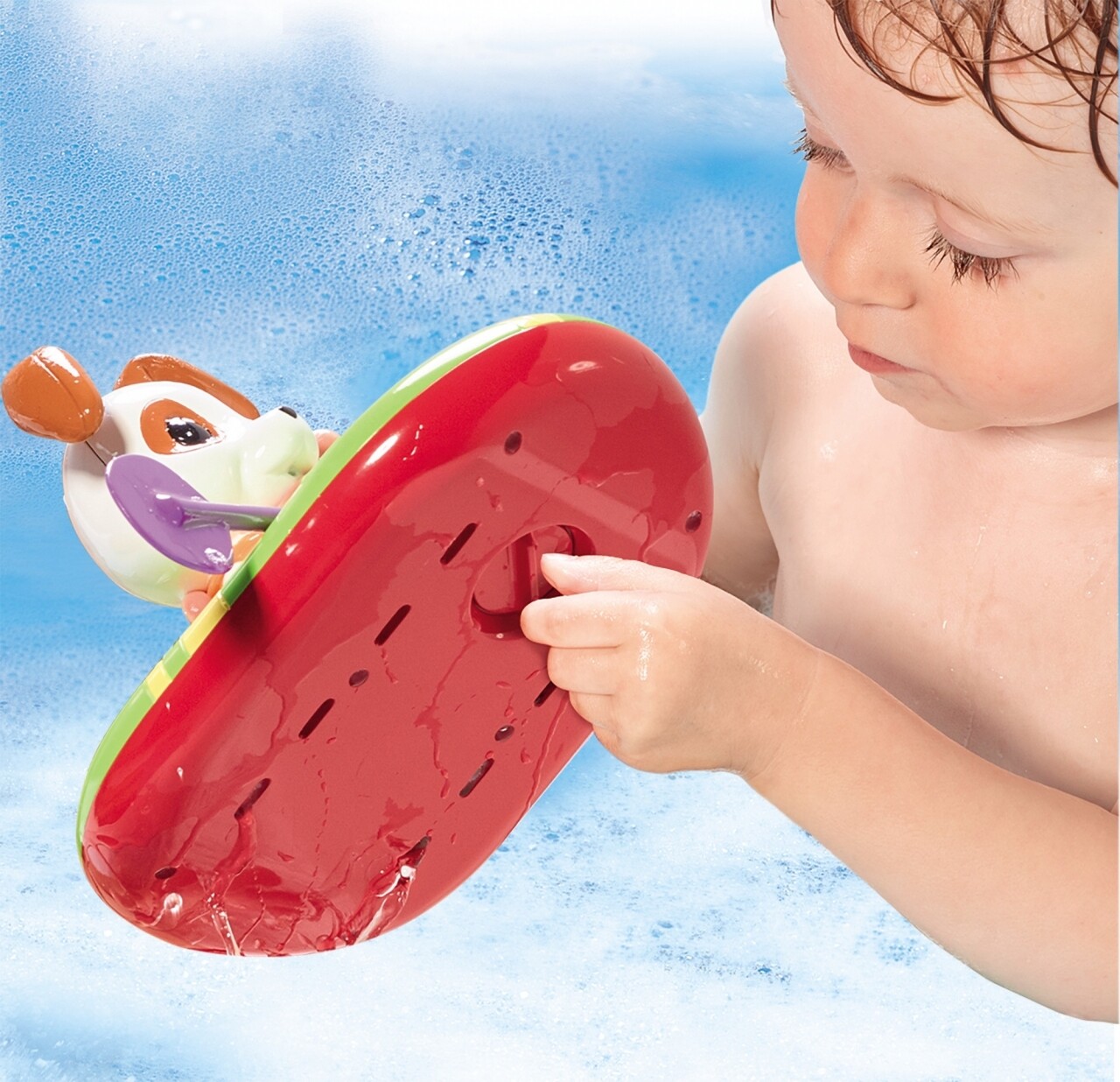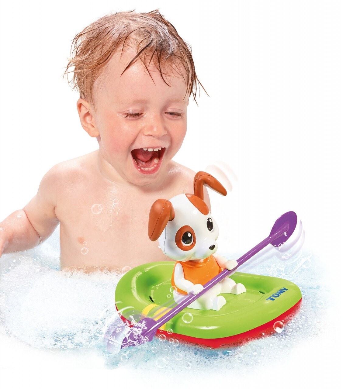 Catelul care vasleste este o jucarie de baie care va distra copiii si adultii in timpul baii. Urmariti cum vaslele se scufunda fie pe o parte, fire pe cealalta a barcutei. Pentru a incepe, invartiti-i cheita si urmariti-l cum incepe sa vasleasca. Jucaria este special conceputa pentru utilizarea in apa.