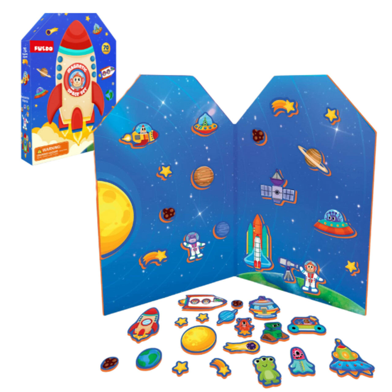 Jucarie Spatiul Cosmic, set magnetic Puedo, 32.5x22.5x5.5 cm, spuma EVA, multicolor