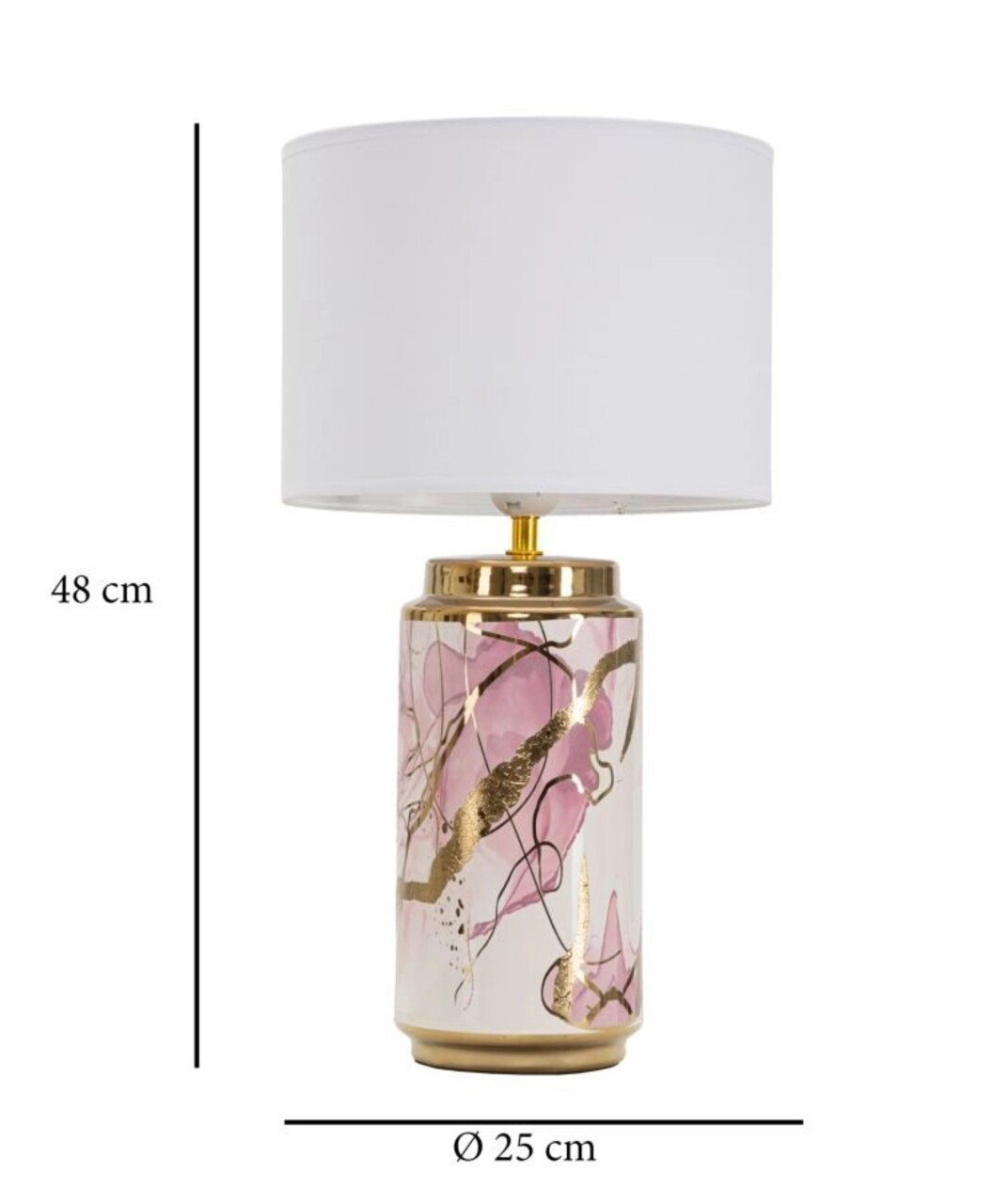 Lampa de masa din ceramica cu abajur din tesatura alba. Decorul floral deosebit al bazei o face perfecta pentru orice incapere.