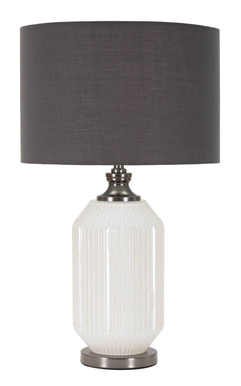 Lampa de masa Brighty, Mauro Ferretti, 1 x E27, 40W, 37.5x65 cm, sticla/fier/catifea, alb/gri