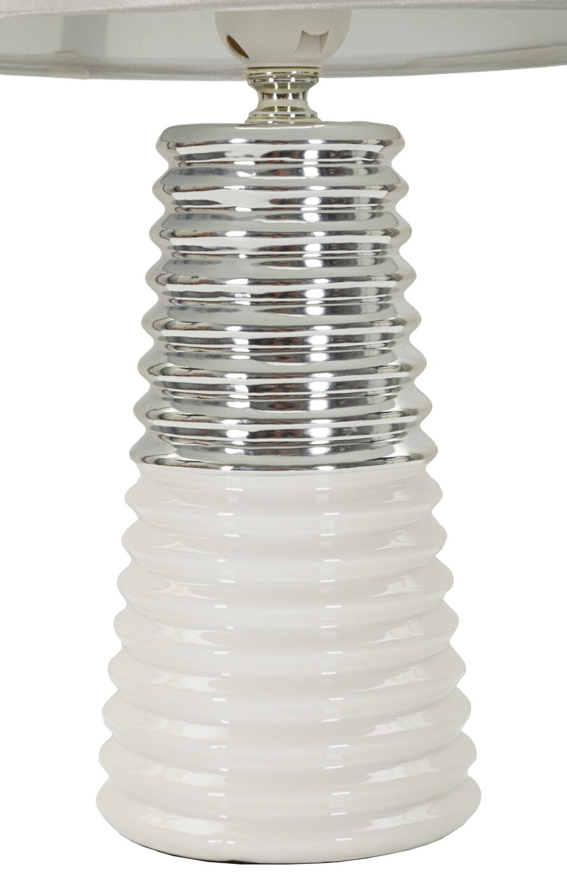 Lampa de masa Candela, Mauro Ferretti, 1 x E27, 40W, 25x41 cm, ceramica/fier/textil, alb/argintiu