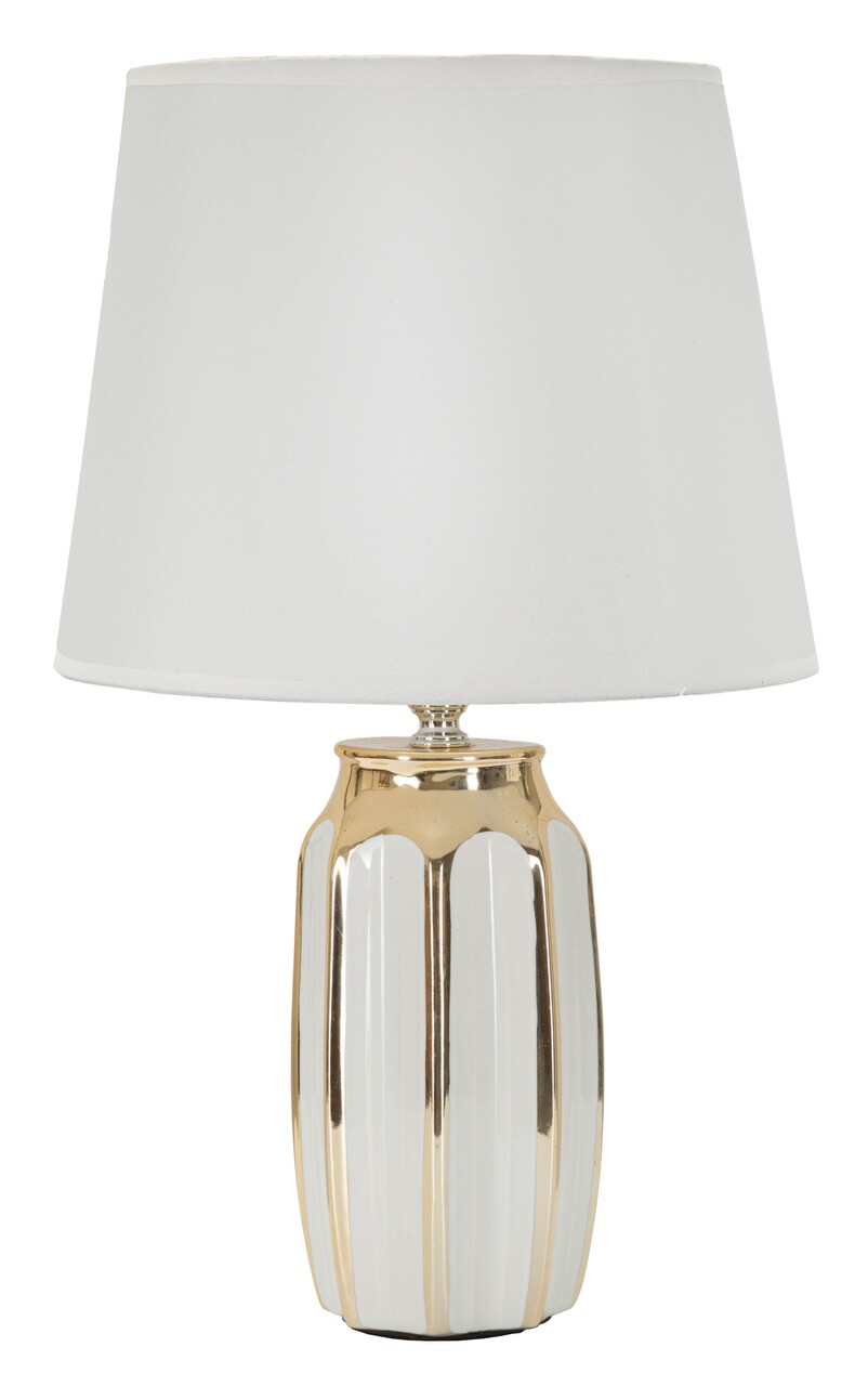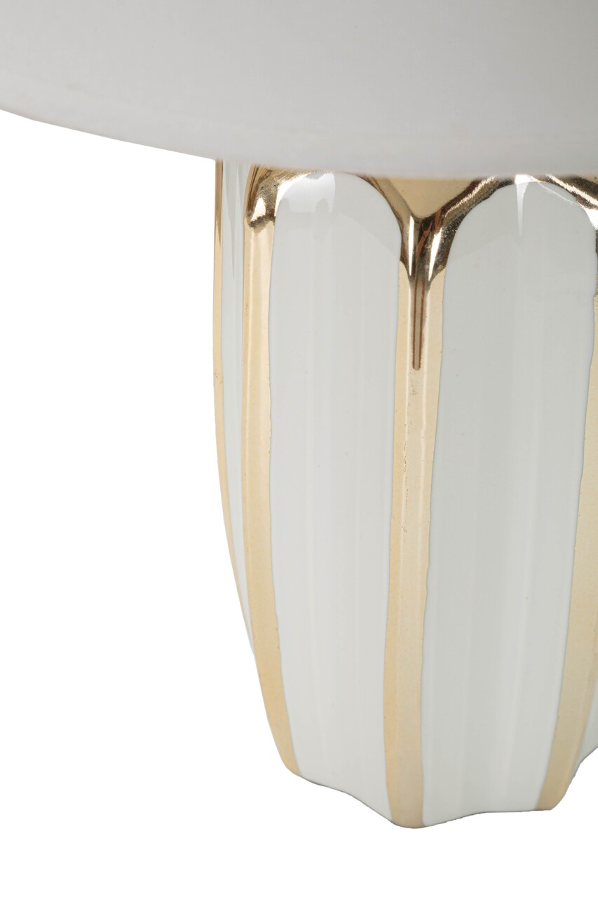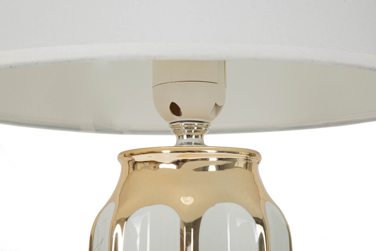 Lampa de masa Cassy, Mauro Ferretti, 1 x E27, 40W, 25x40.5 cm, ceramica/fier/textil, alb/auriu
