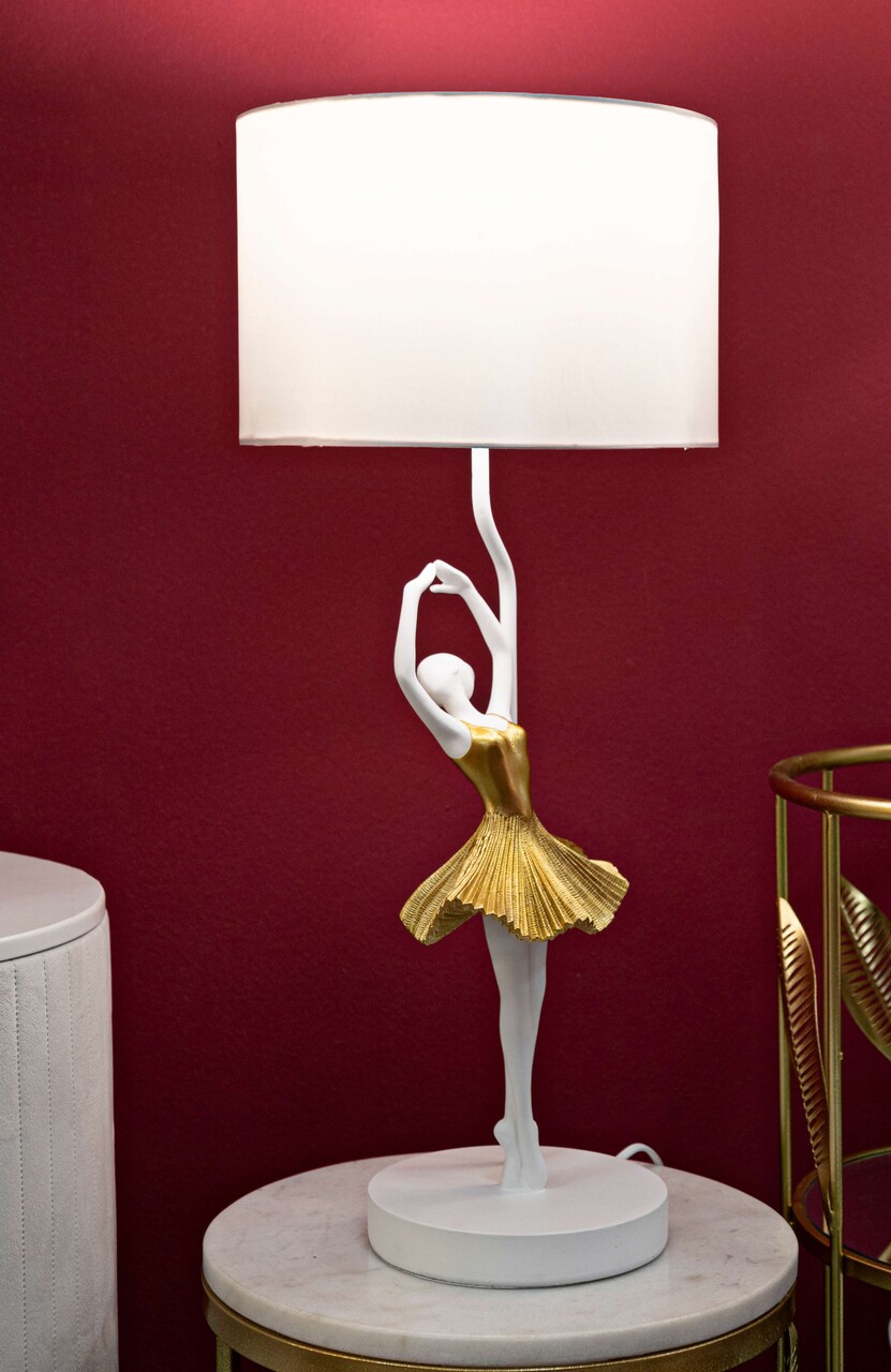 Lampa de masa Dancer, Mauro Ferretti, 1 x E27, 40W, 28x64 cm, polirasina/fier, auriu/alb