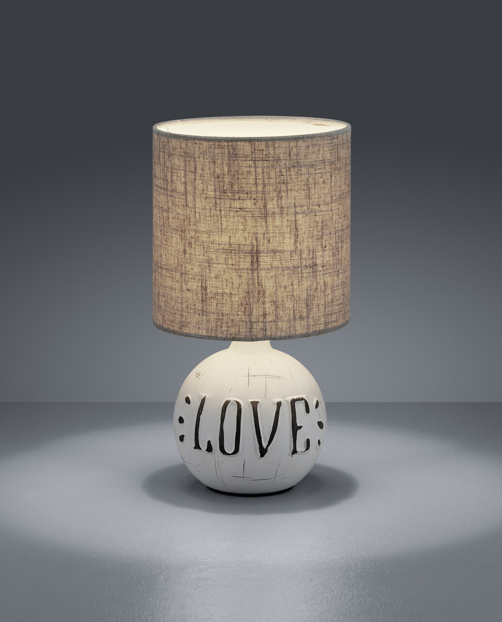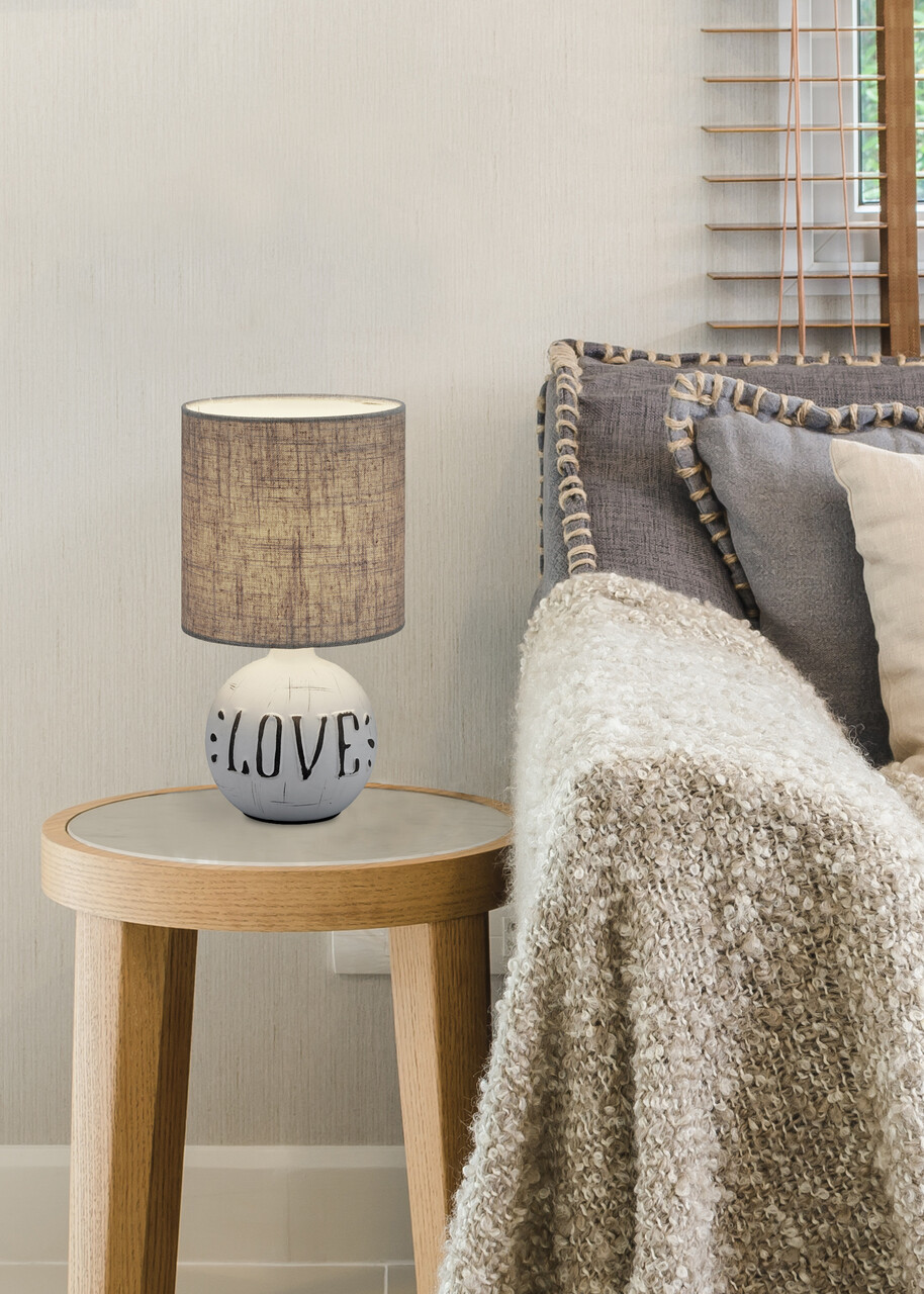 Lampa de masa Esna Love, RL, 16.5x31 cm, 40W, 1x E14, ceramica/textil, gri/alb