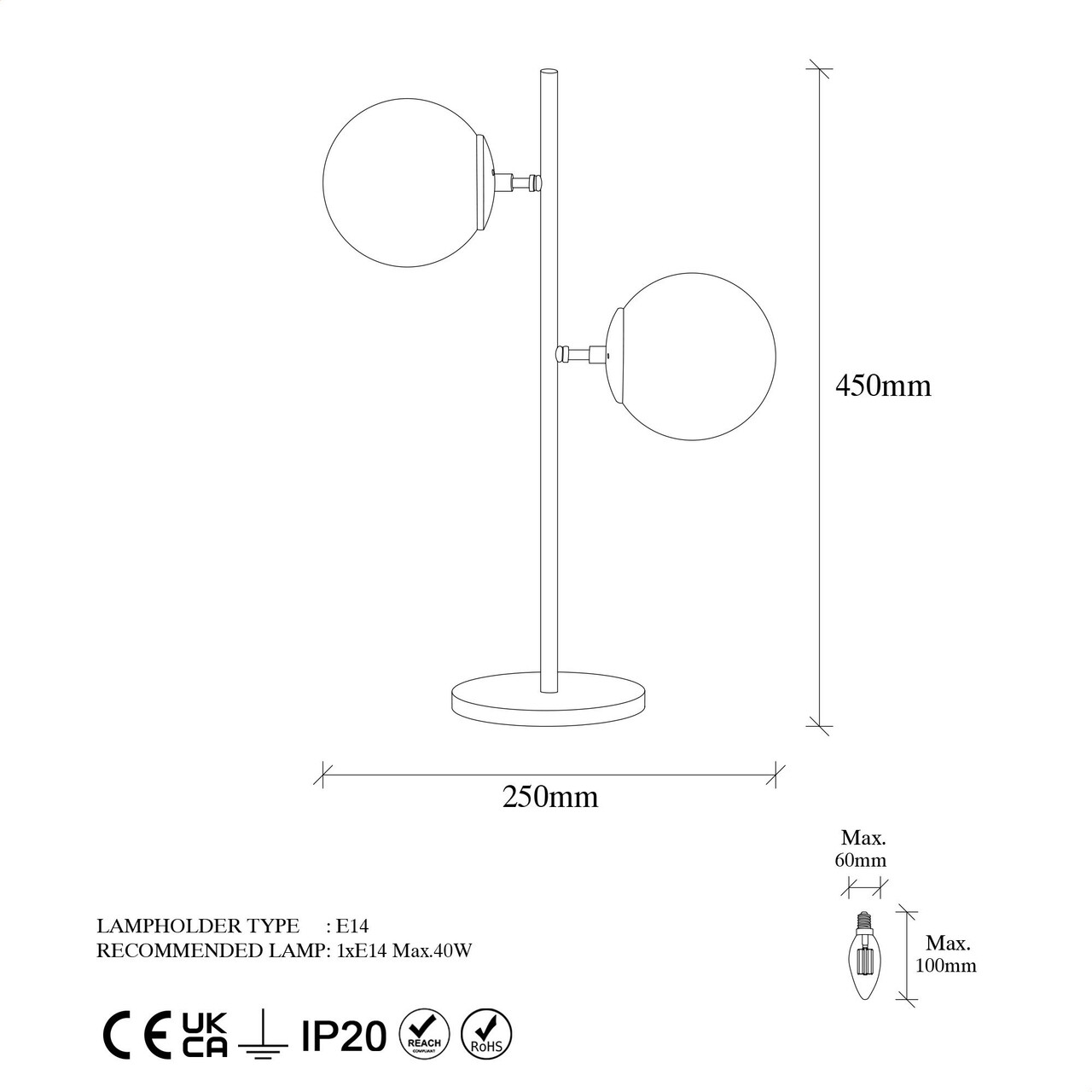 Lampa de masa, Fulgor, 942FLG1816, Metal, Negru / Auriu / Alb