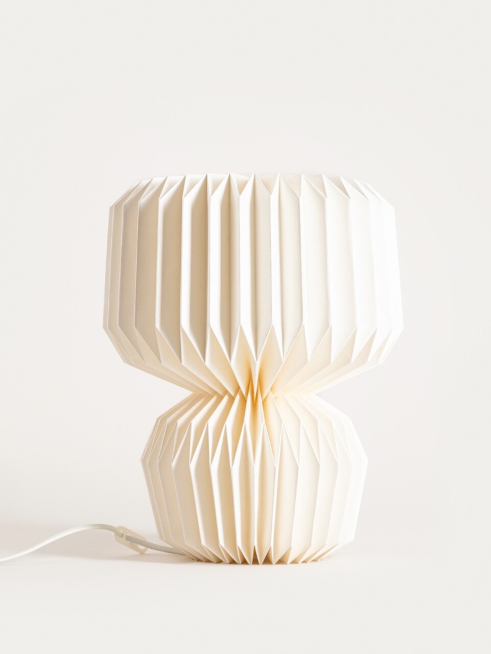 Lampa de masa GALLA este alimentata de la o priza standard, astfel incat trebuie asezata pe o masa, comoda, birou sau noptiera in dormitor. Inspirata de origami-ul traditional japonez, are si o forma moderna, ceea ce o face un accesoriu versatil pentru diverse stiluri de design interior, in special modern, scandinav, boho si Japandi.