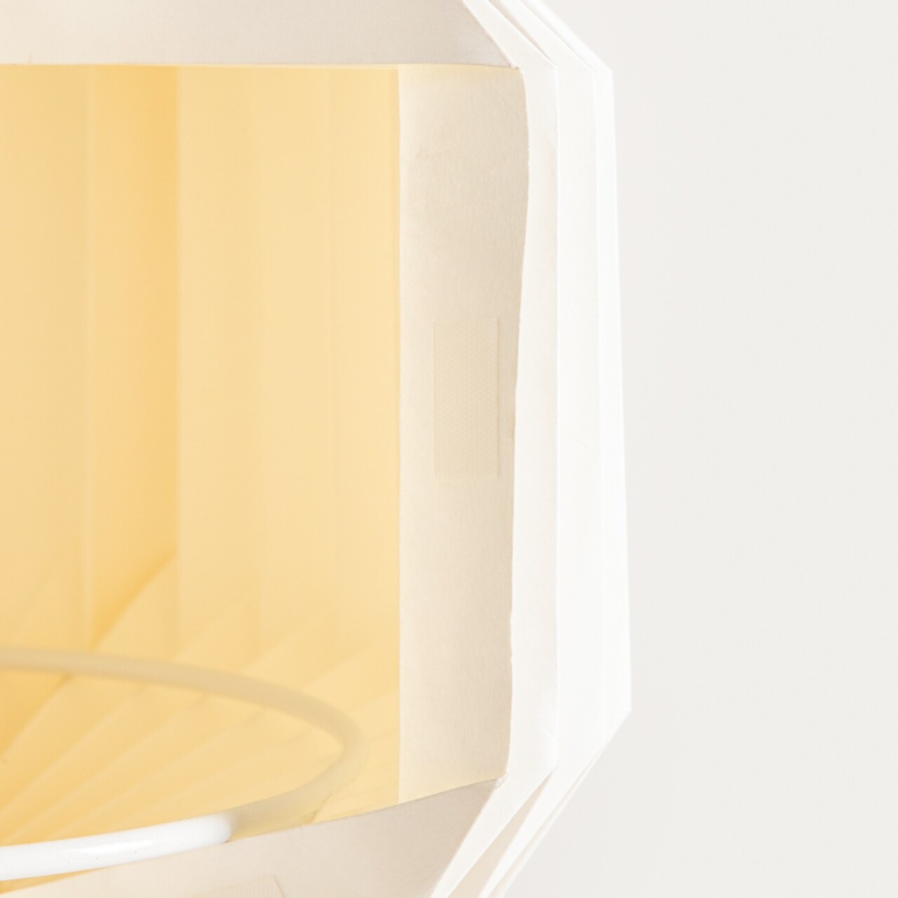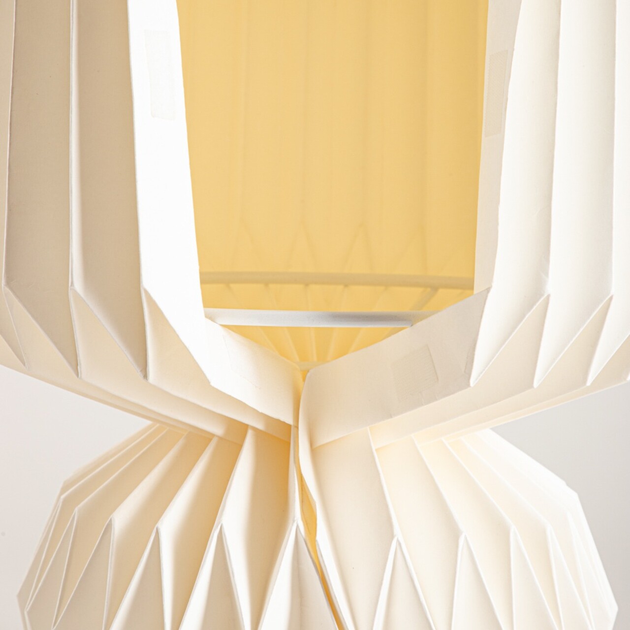 Abajurul este fabricat din hartie de inalta calitate, asigurand durabilitate si rezistenta. Abajurul are la baza un cerc din sarma care acopera soclul becului E14. Becul nu este inclus. Pentru aceasta lampa se recomanda un bec LED. Puterea maxima a becului este de 25W.