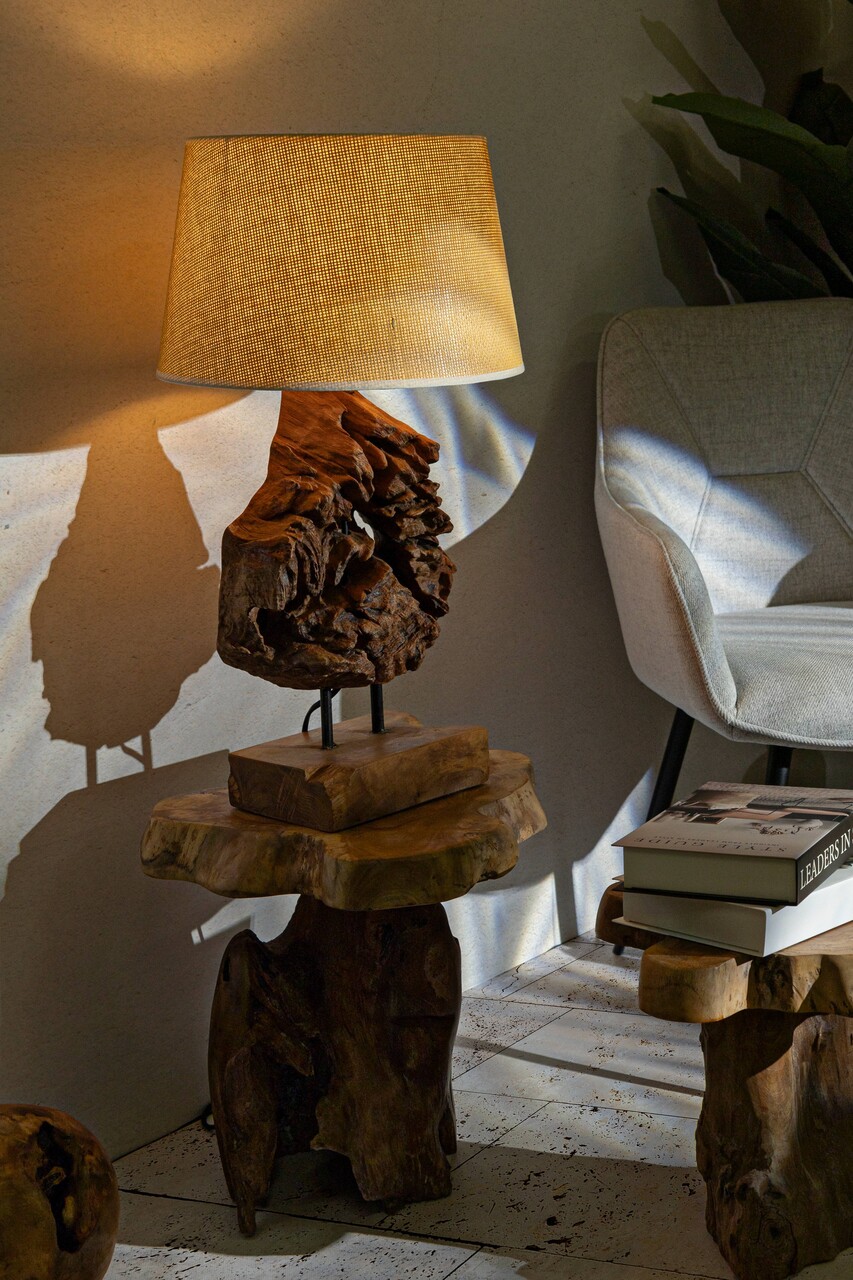 Lampa de masa Kepala, Mauro Ferretti, 1 x E27, 40W, 35x69 cm, tec reciclat, lucrat manual, model unicat, maro