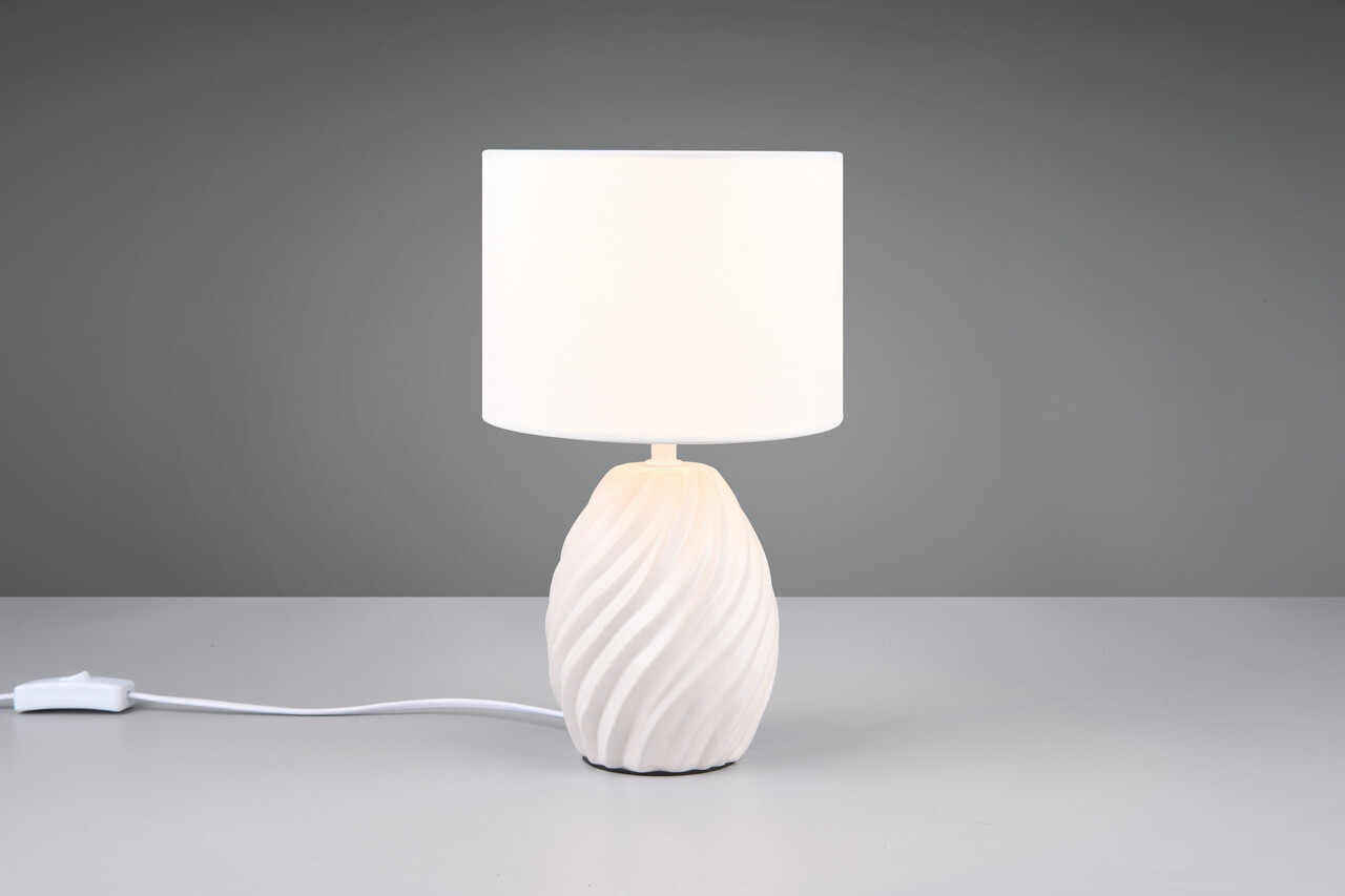 Lampa de masa Melva, RL, 18x31 cm, 40W, 1x E14, ceramica/textil, alb mat