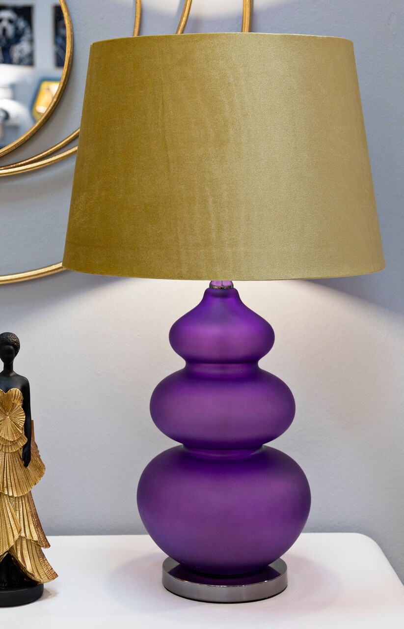 Lampa de masa Milva, Mauro Ferretti, 1 x E27, 40W, 40x70 cm, sticla/fier/catifea, mov/galben
