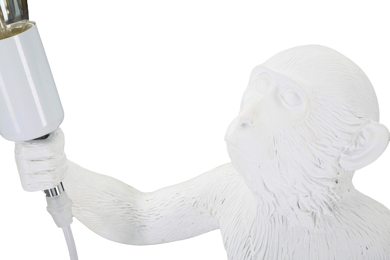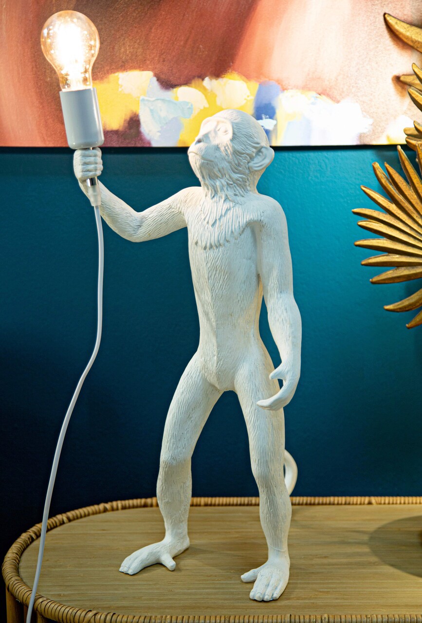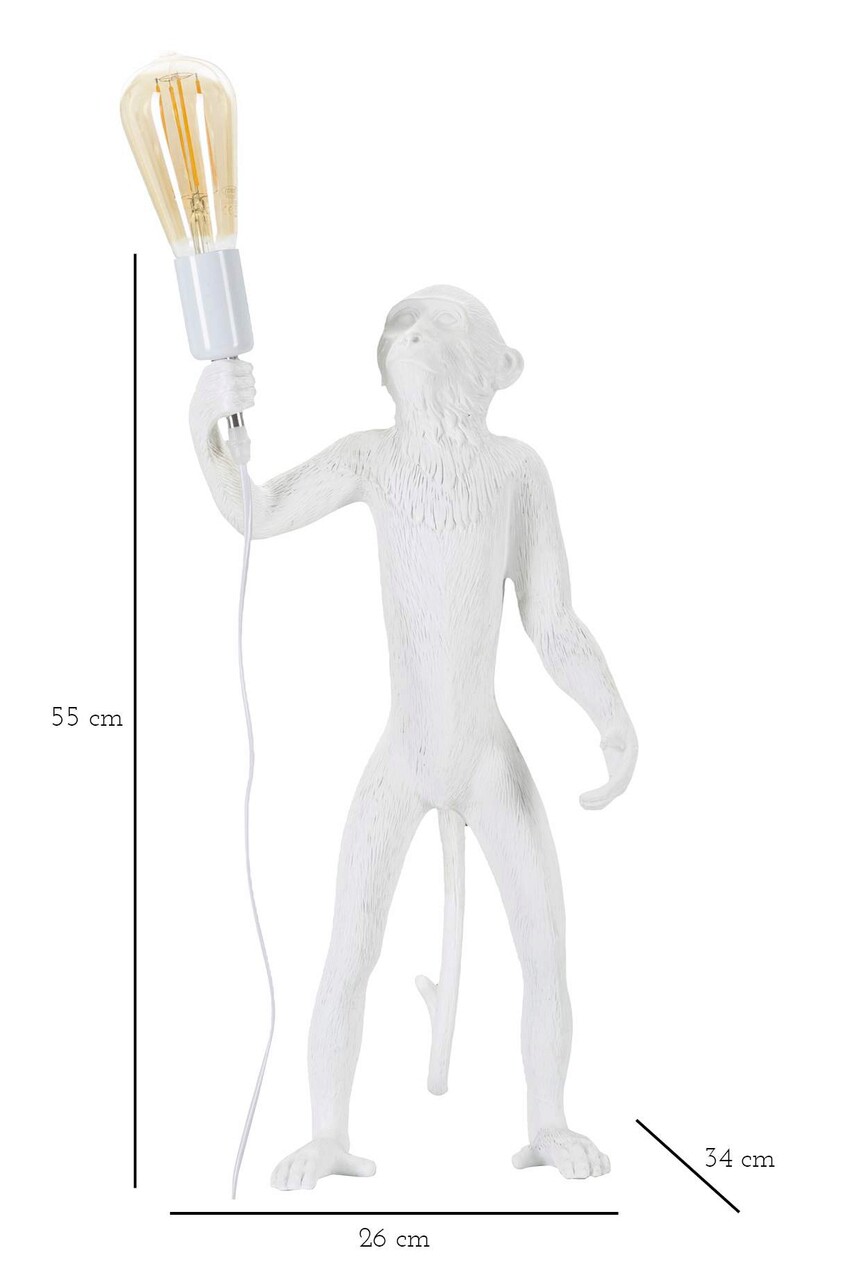 Lampa de masa din polirasina reprezentand o maimuta care sta in picioare si tine becul in mana.