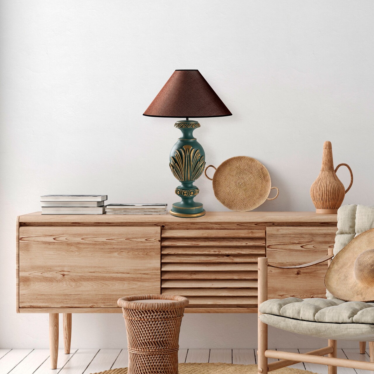 Lampa de masa, Opviq, 897TNL1113, Verde/Maro