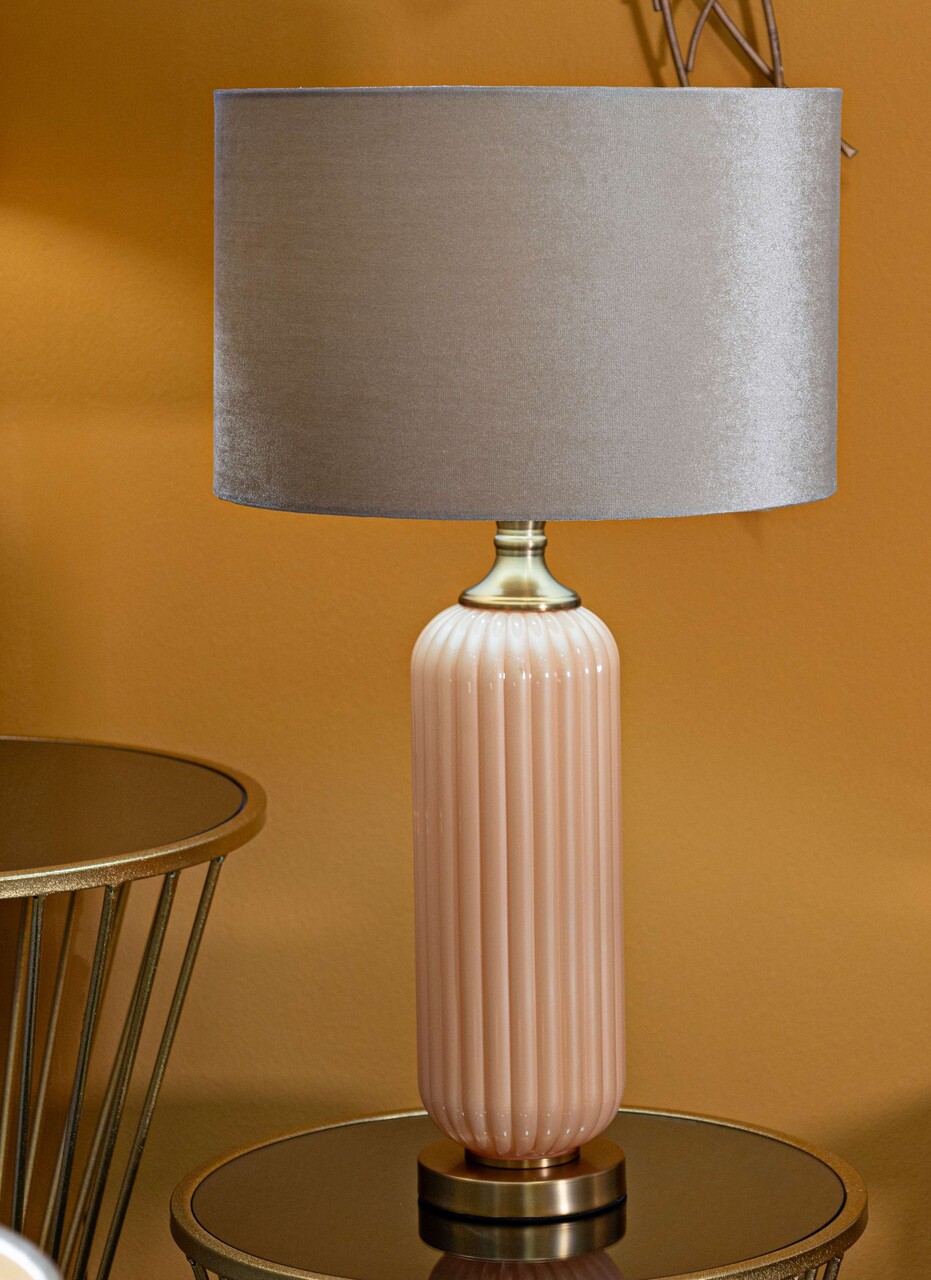 Lampa de masa Perly -C, Mauro Ferretti, 1 x E27, 40W, 35.5x64 cm, sticla/fier/textil, perla/auriu