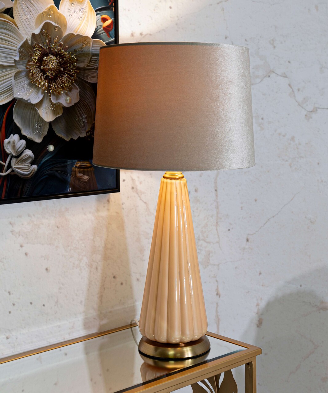 Lampa de masa Perly -H, Mauro Ferretti, 1 x E27, 40W, 36.5x68.5 cm, sticla/fier/textil, perla/auriu