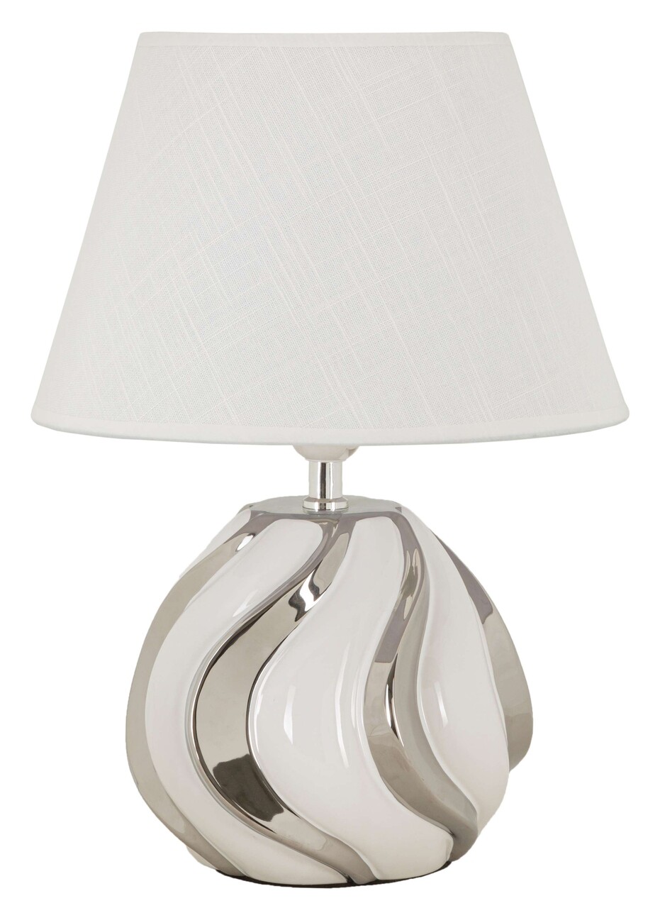 Lampa de masa Shiney, Mauro Ferretti, 1 x E27, 40W, 30x42 cm, ceramica/fier, alb/argintiu