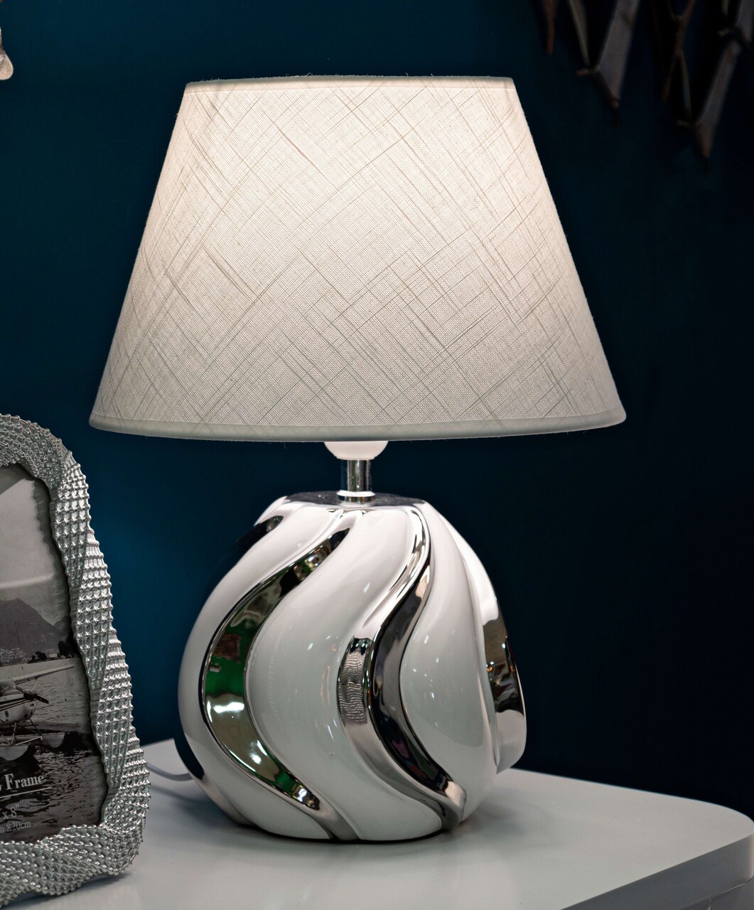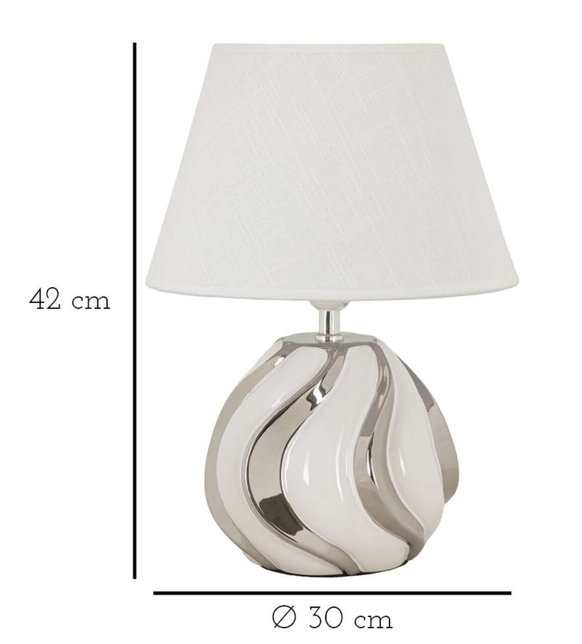 Eleganta discreta, perfecta pentru un decor rafinat. Include abajur textil alb.