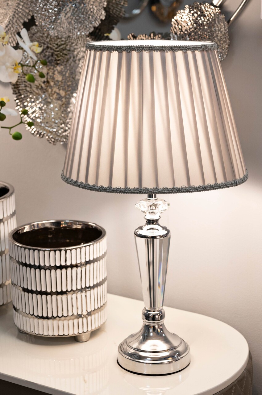 Lampa de masa Silvery, Mauro Ferretti, 1 x E27, 40W, 30x56 cm, metal/sticla/textil, argintiu