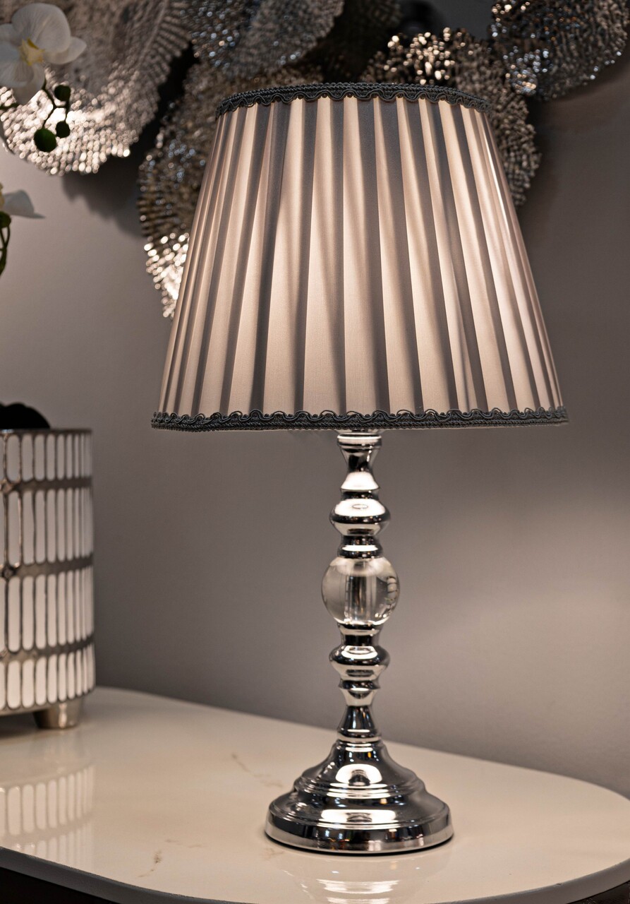 Lampa de masa Tilly, Mauro Ferretti, 1 x E27, 40W, 25x46 cm, metal/sticla/textil, argintiu