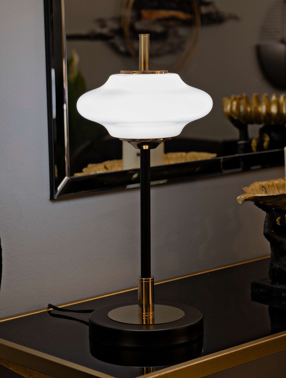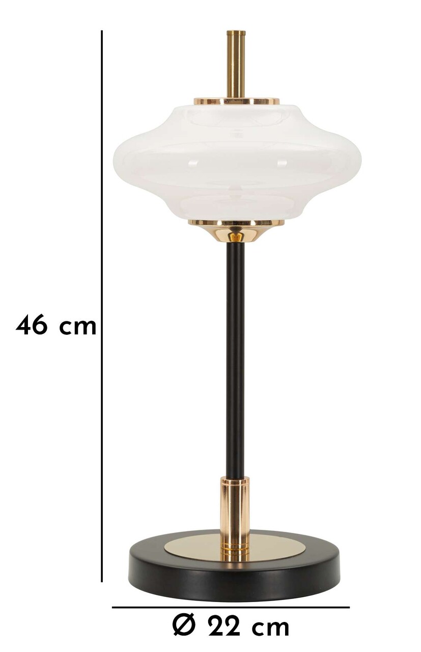 Lampa de masa Vintage, Mauro Ferretti, 1 x E14, 40W, 22x46 cm, fier/sticla, auriu/negru/alb