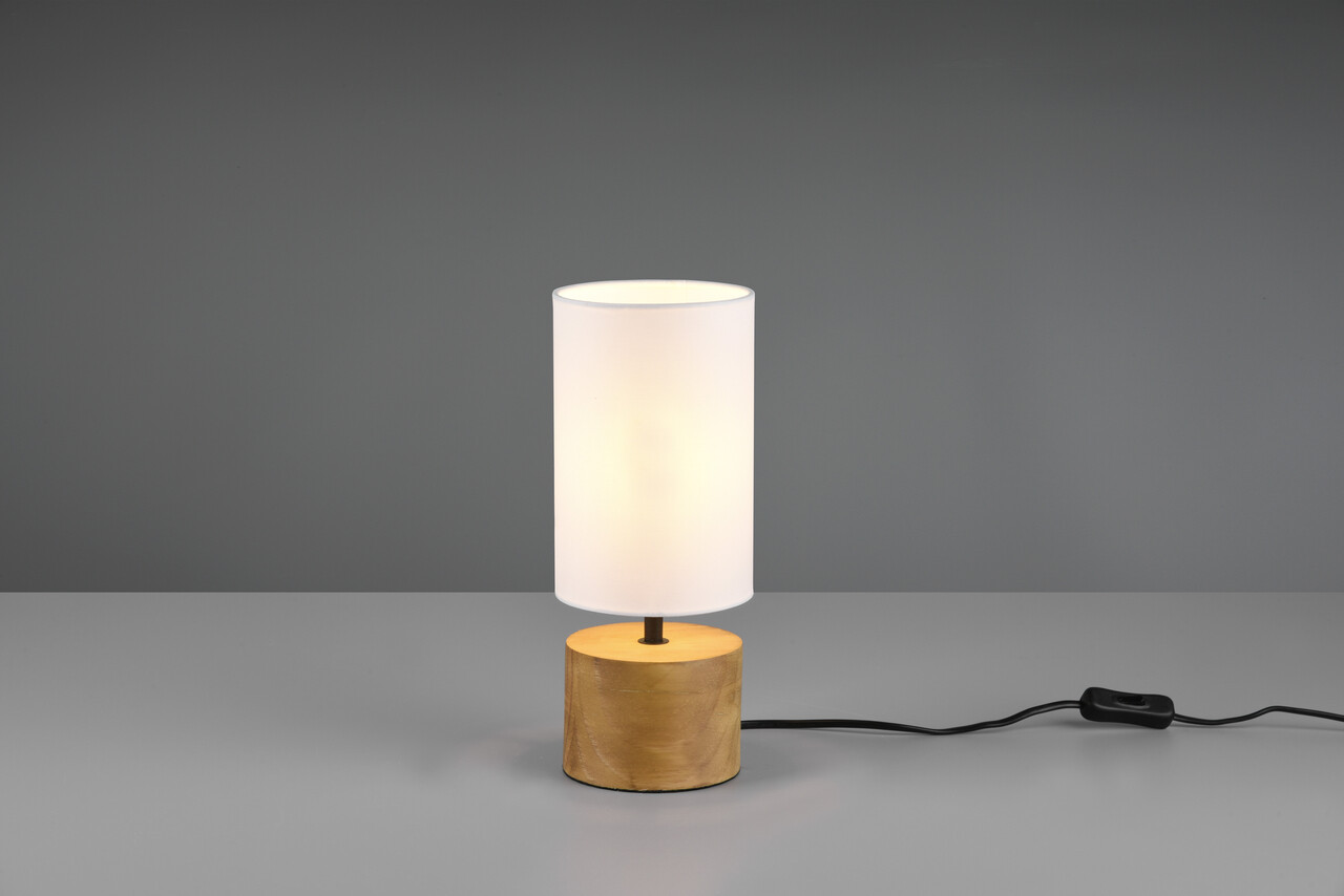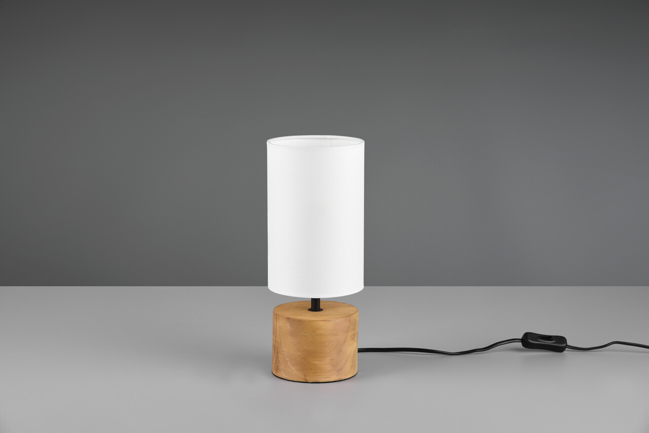Lampa de masa Woody, RL, 12x30 cm, 40W, 1x E14, lemn/textil, alb/natur