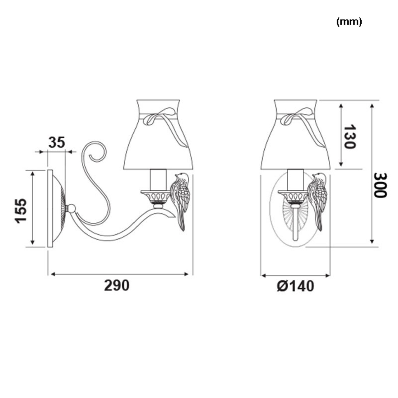 Lampa de perete Aca Lighting, Bohemia Vintage Gold, E14, 60W
