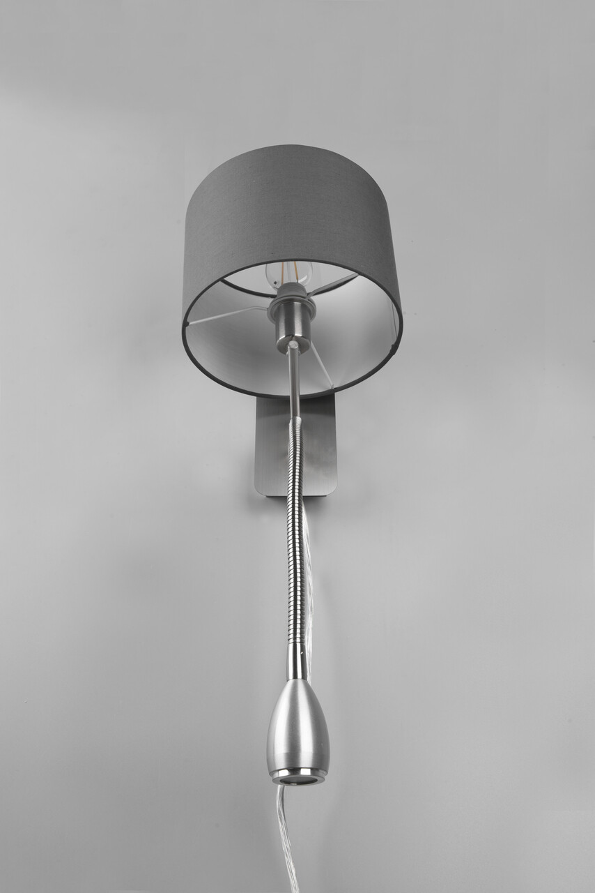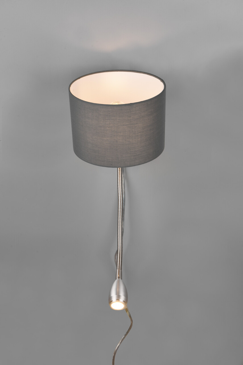Lampa de perete Hotel, TRIO, 20x34.5x23.5 cm, 40W, 1x E14, metal/textil, gri/argintiu
