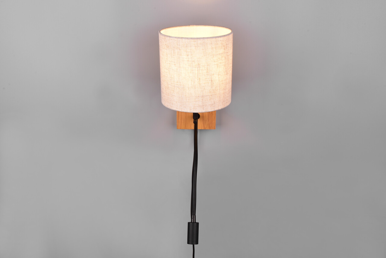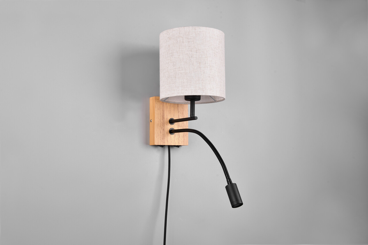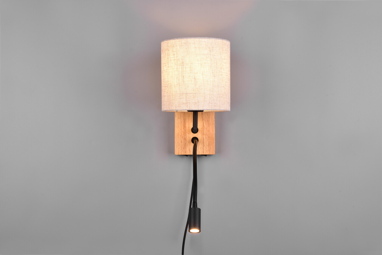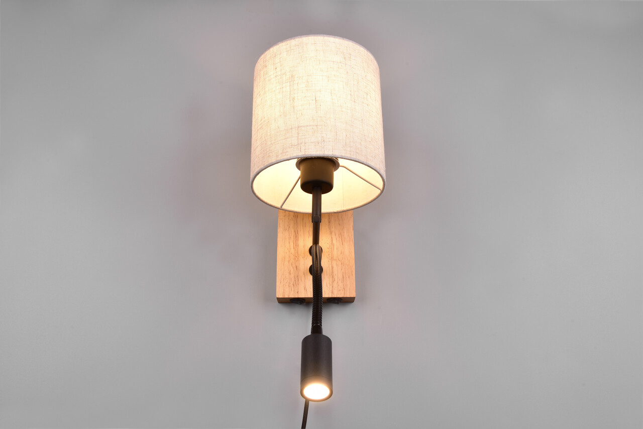 Lampa de perete Nilam, TRIO, 18x18x30 cm, 28W / 3W, 1x E27 / 1x SMD, lemn, natur/negru