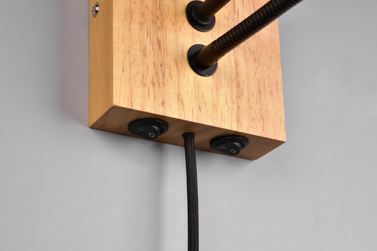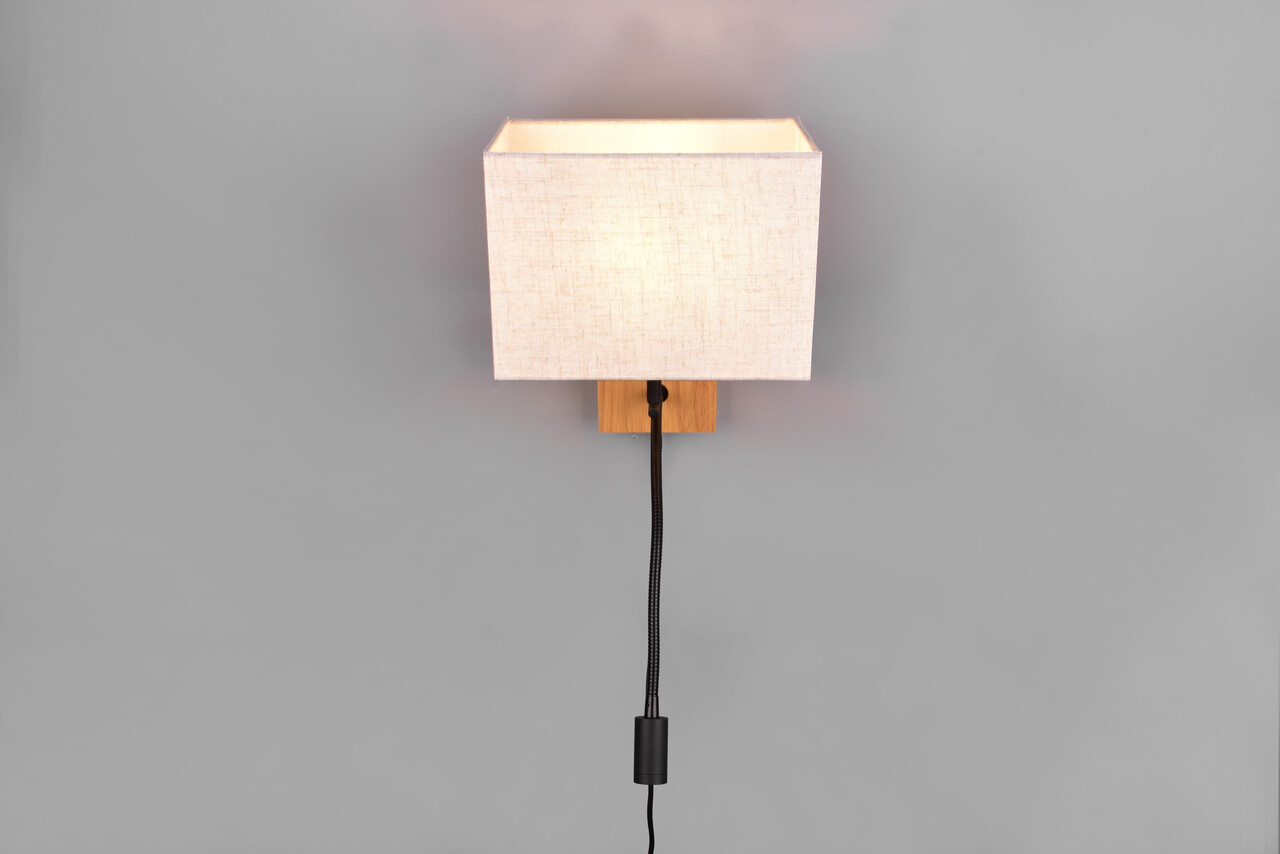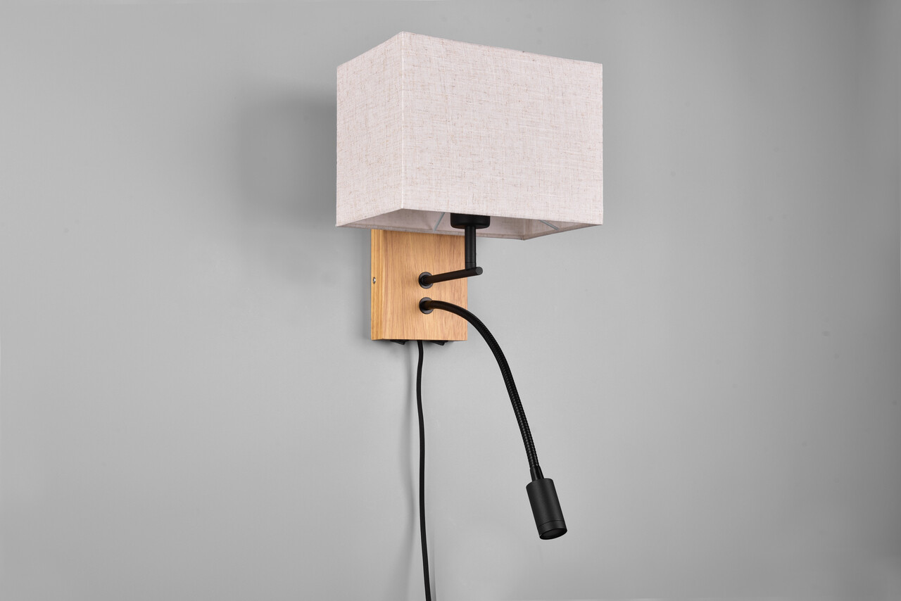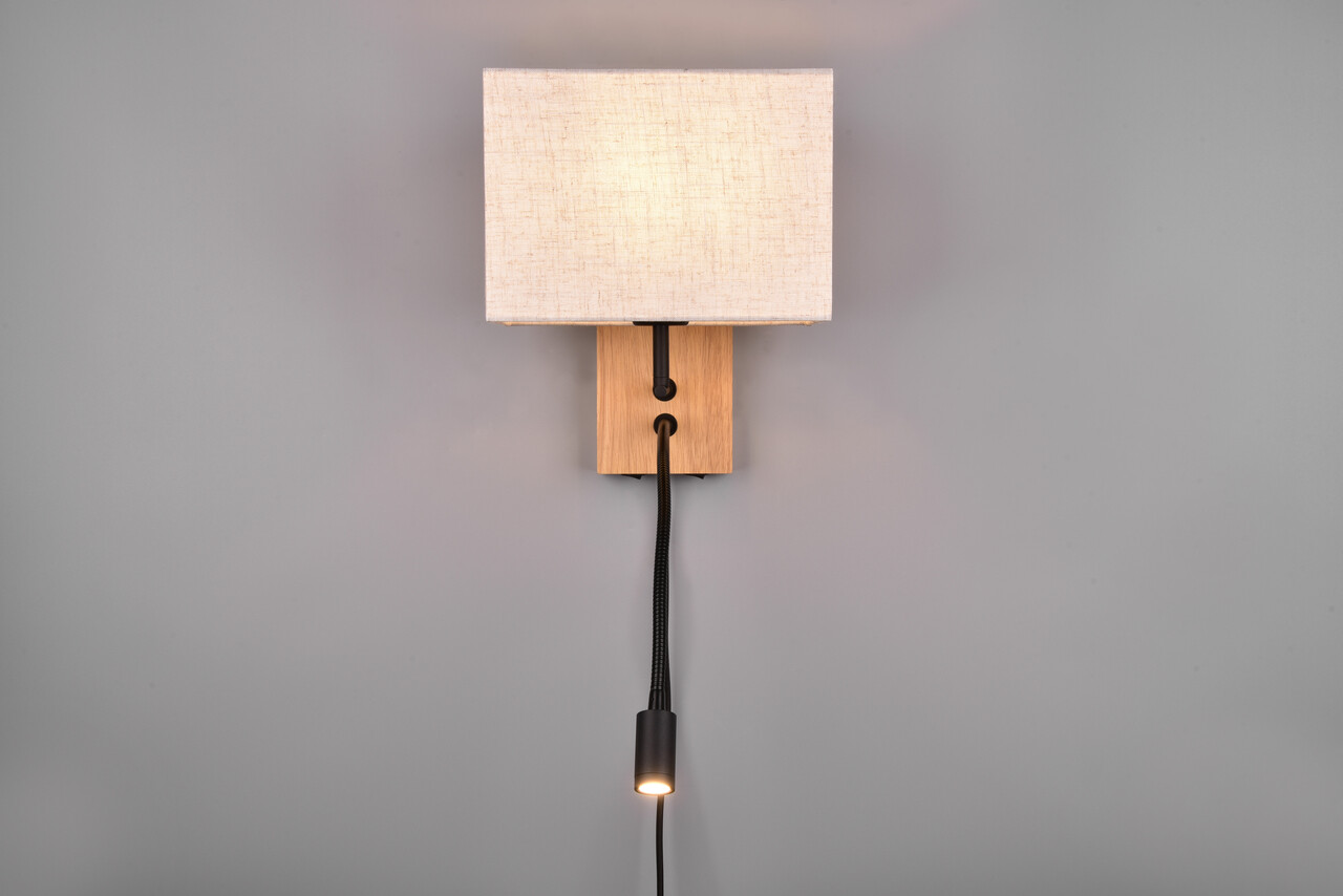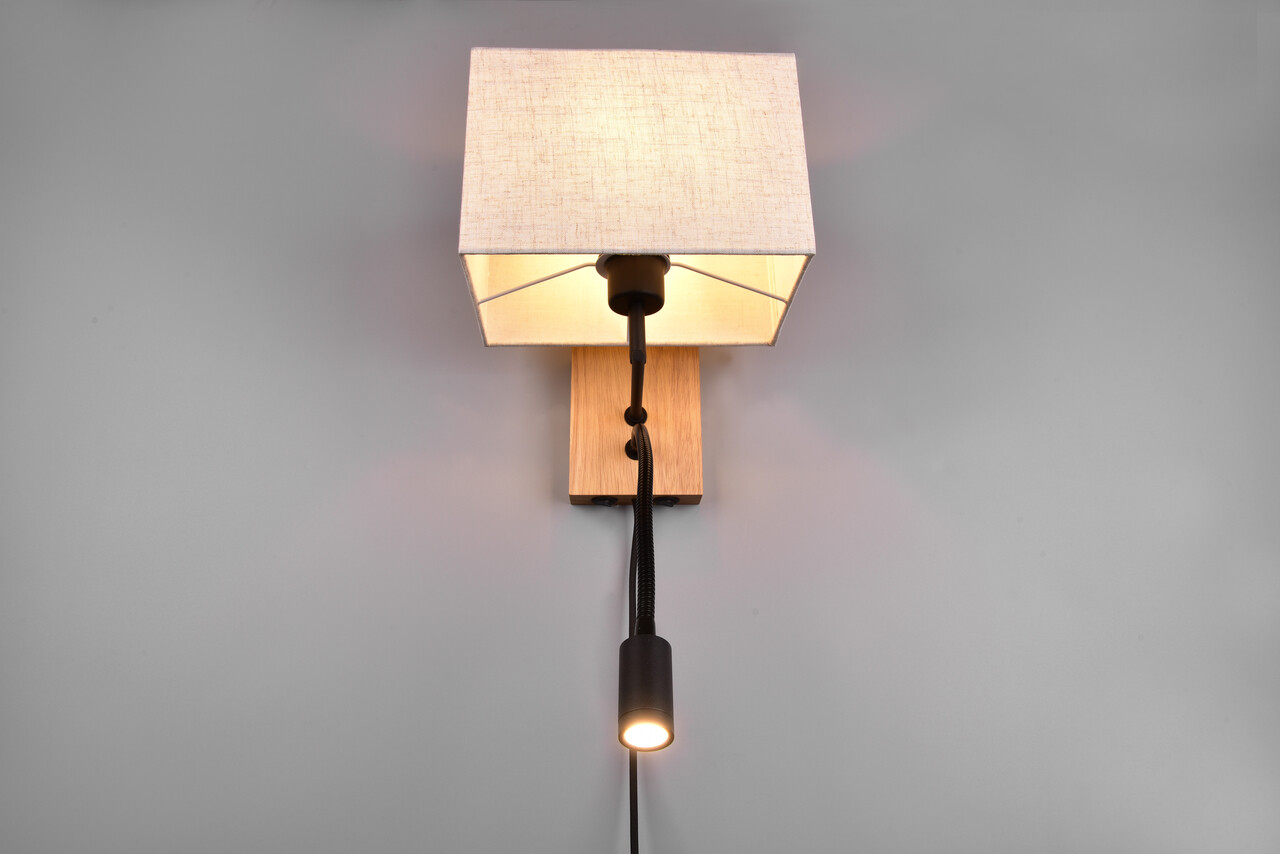 Lampa de perete Nilam, TRIO, 25x30 cm, 28W / 3W, 1x E27 / 1x SMD, lemn, natur/negru