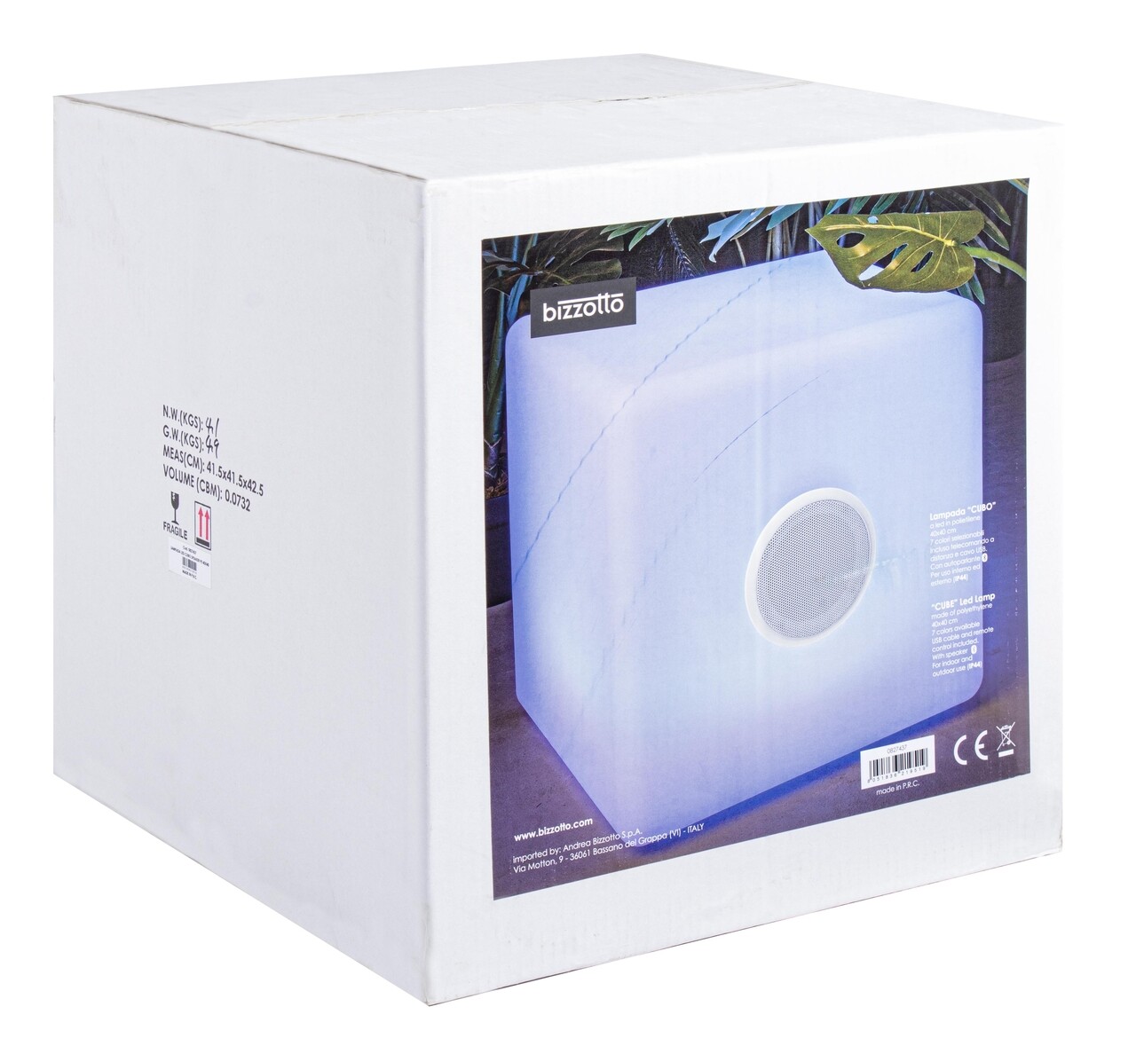 Lampa LED cu difuzor Bluetooth, Bizzotto Cube, 7 culori, cablu USB + telecomanda, 40x40x40 cm