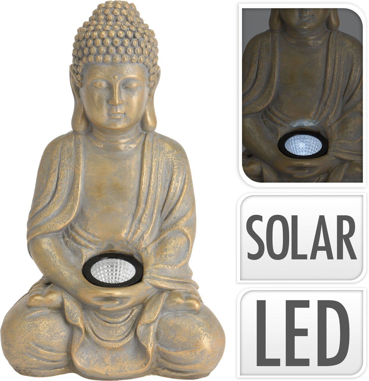 Lampa solara Buddha, H33 cm, auriu