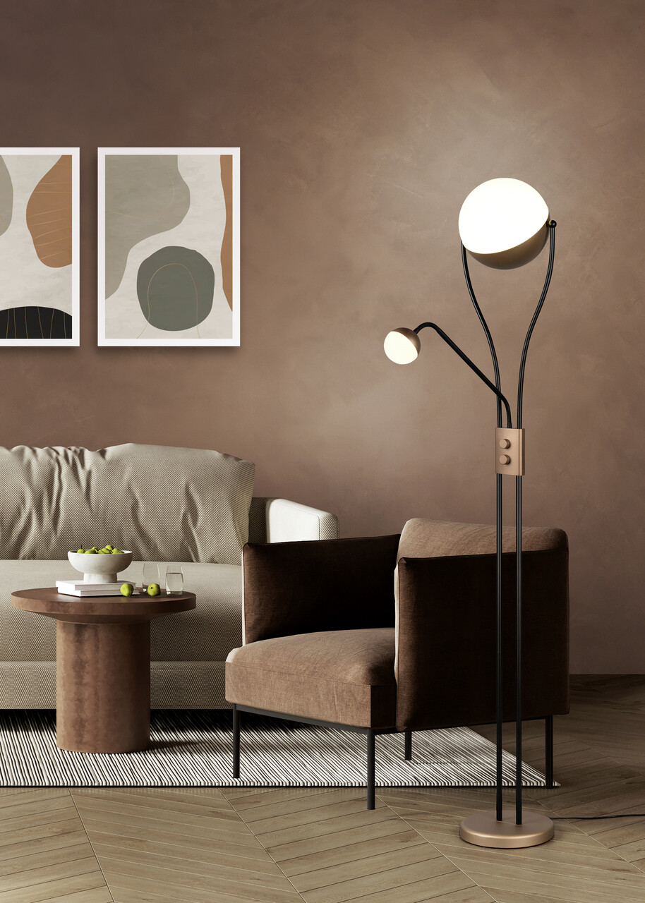 Lampadar Chris, TRIO, 30x180 cm, 18W / 3.8W, 2x SMD, metal, negru/maro