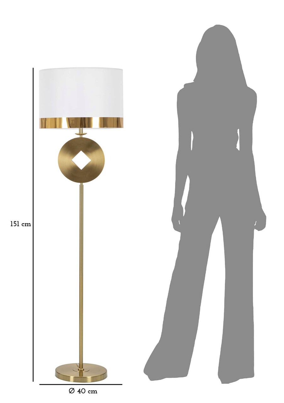 Lampadar Coin, Mauro Ferretti, Ø40 x 151 cm, 1 x E27, 40W, fier/textil, auriu/alb