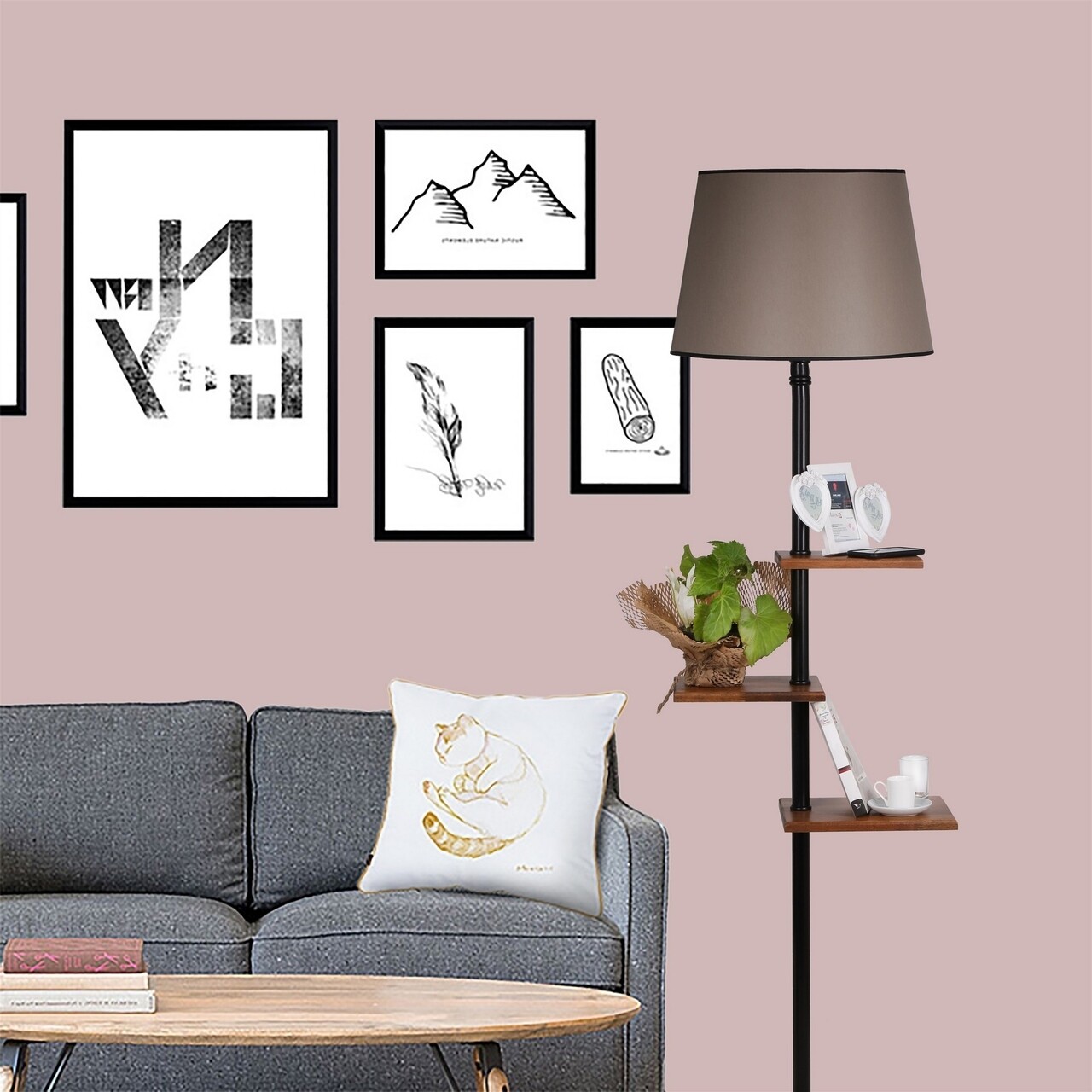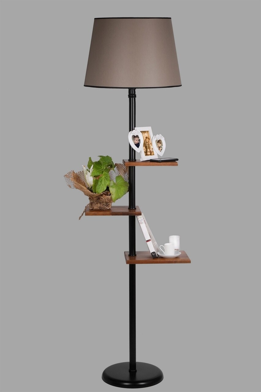 Lampadar cu 3 rafturi, Luin, 8270-3E27, 60 W, metal/lemn/textil