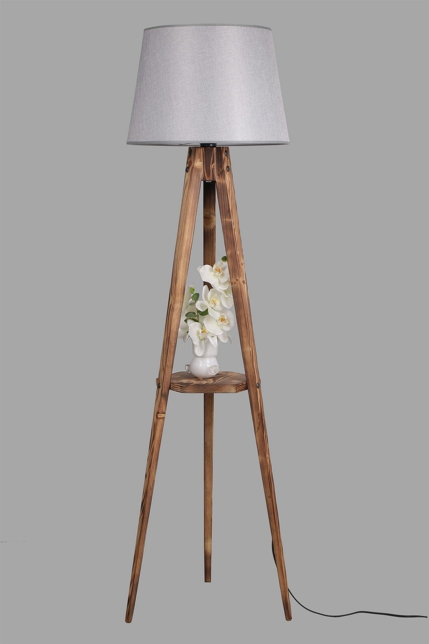 Lampadar cu raft, Luin, 8283-7, E27, 60 W, lemn/textil