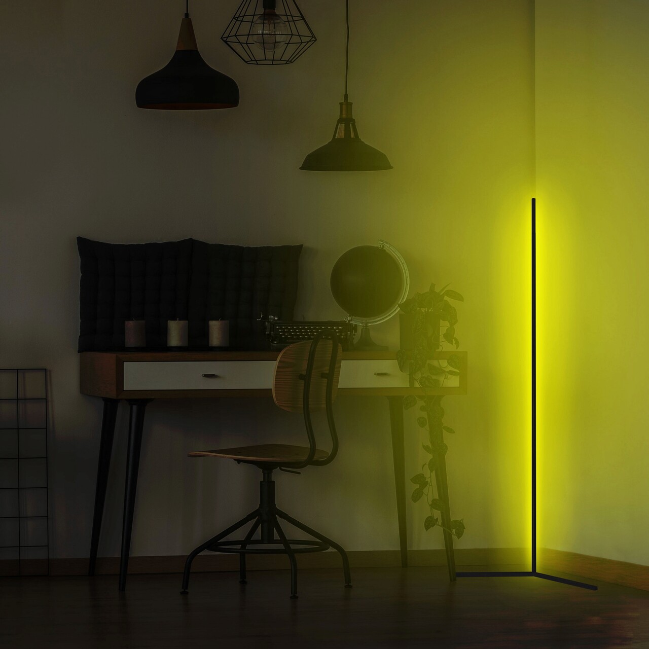 Lampadar, Curlux, 395NGR1106, Corp din aluminiu, 120 cm, Invelis electrostatic, Galben