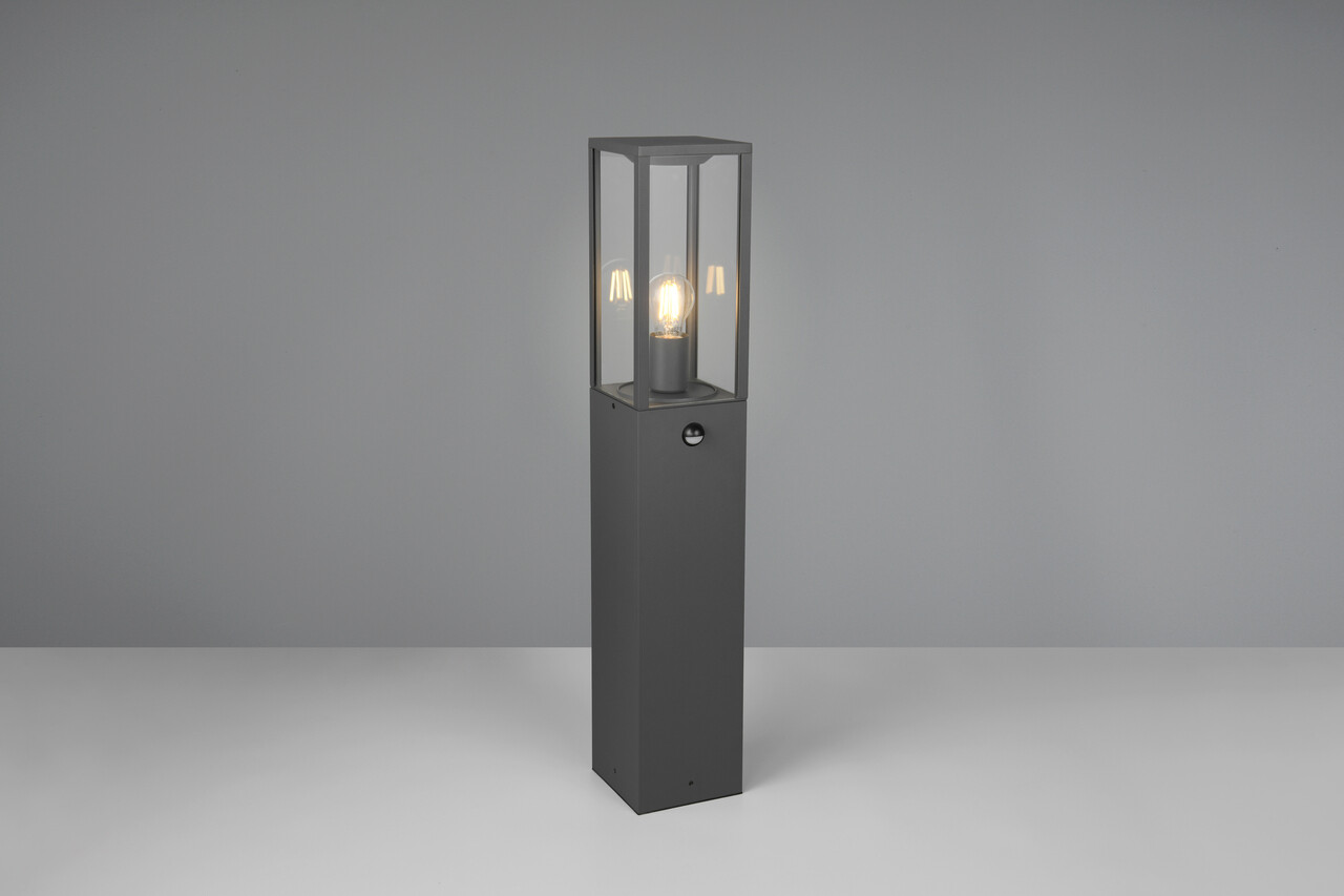 Lampadar de exterior cu senzor Garonne, TRIO, 14x15.5x80 cm, 60W, 1x E27, aluminiu, antracit