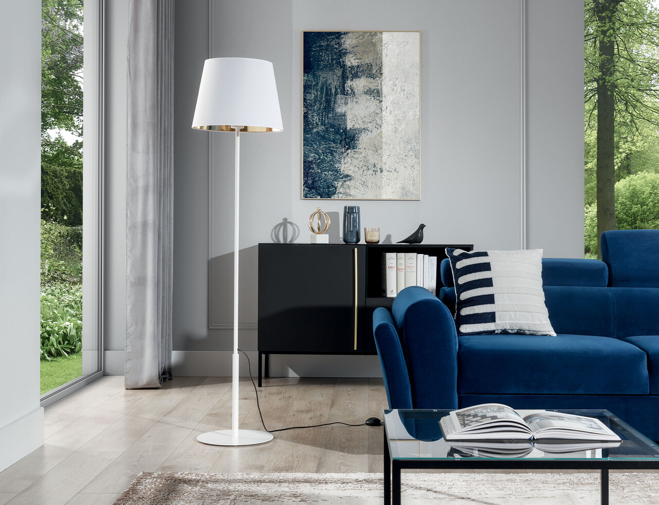 Lampadar ELTAP, Vespillo, 38x154 cm, 1xE27, 15W, otel/PVC, alb/auriu