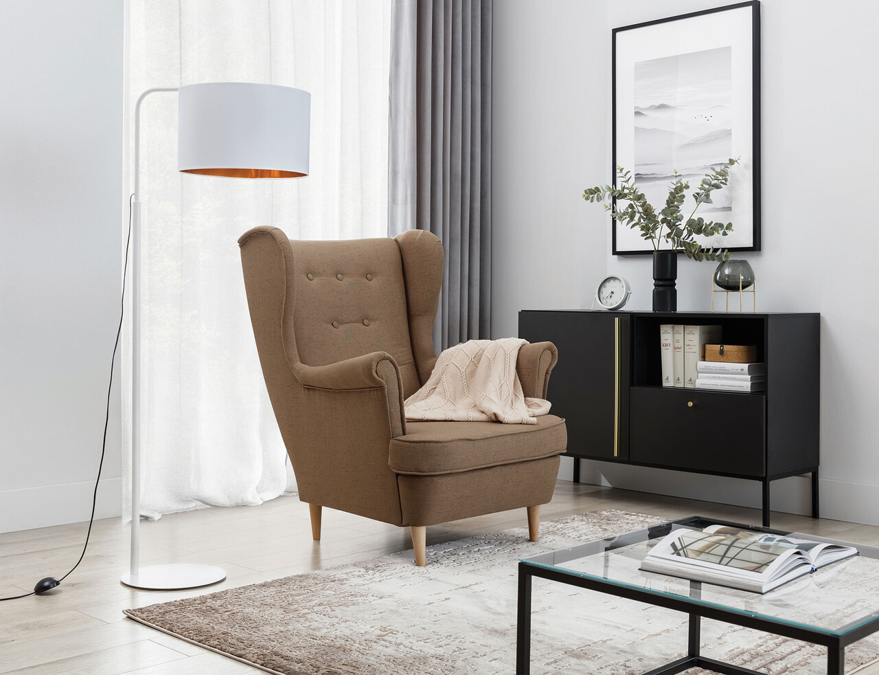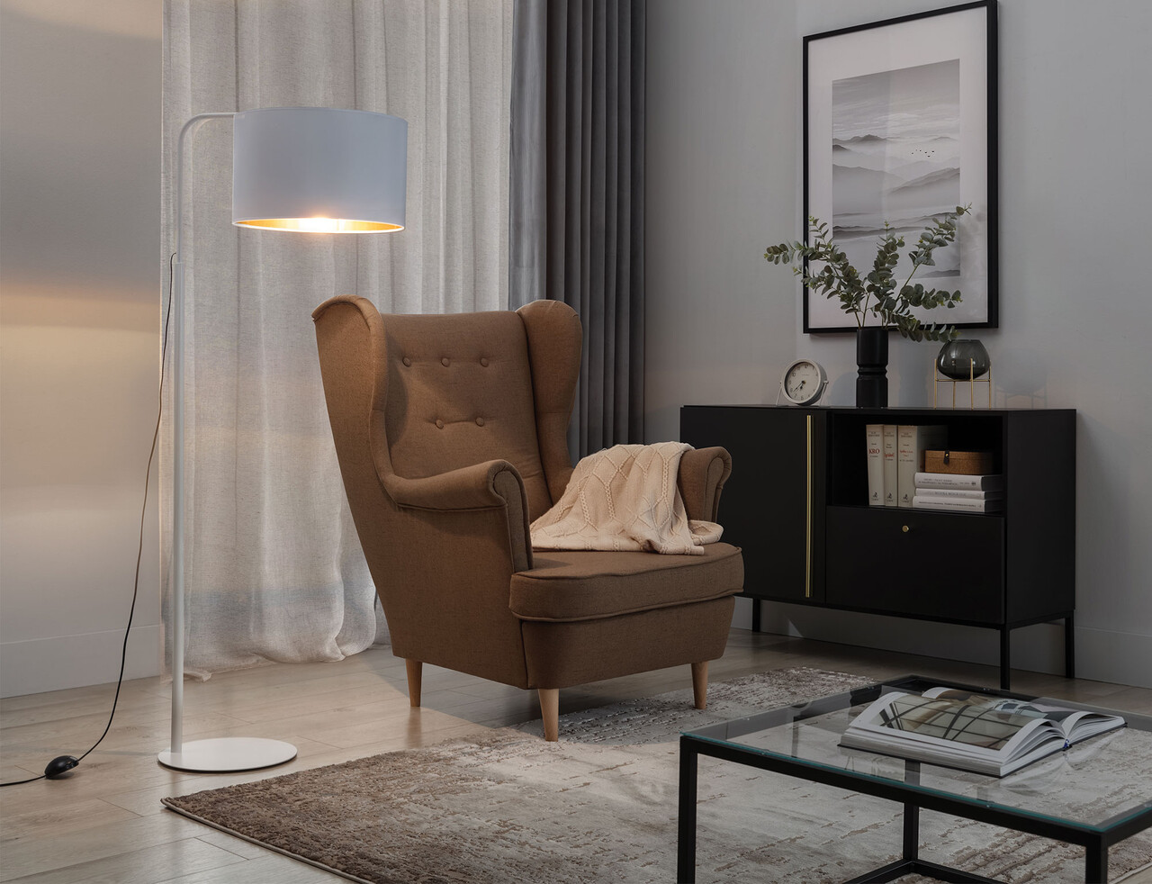 Lampadar ELTAP, Vespillo, 70x40x151 cm, 1xE27, 15W, otel/PVC, alb/auriu