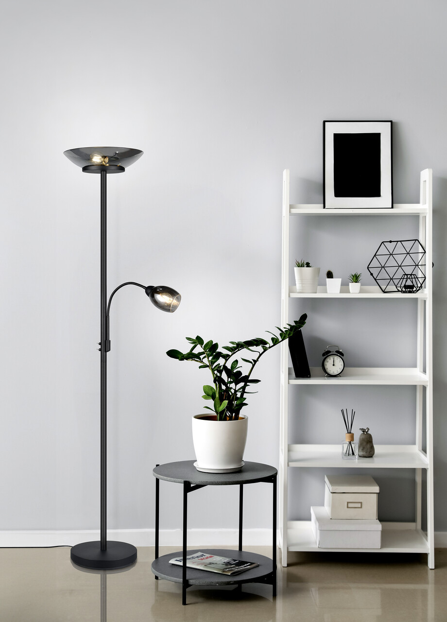 Lampadar Gerry, RL, 34x180 cm, 18W/10W, 2x E27, 1x E14, metal, negru mat/gri