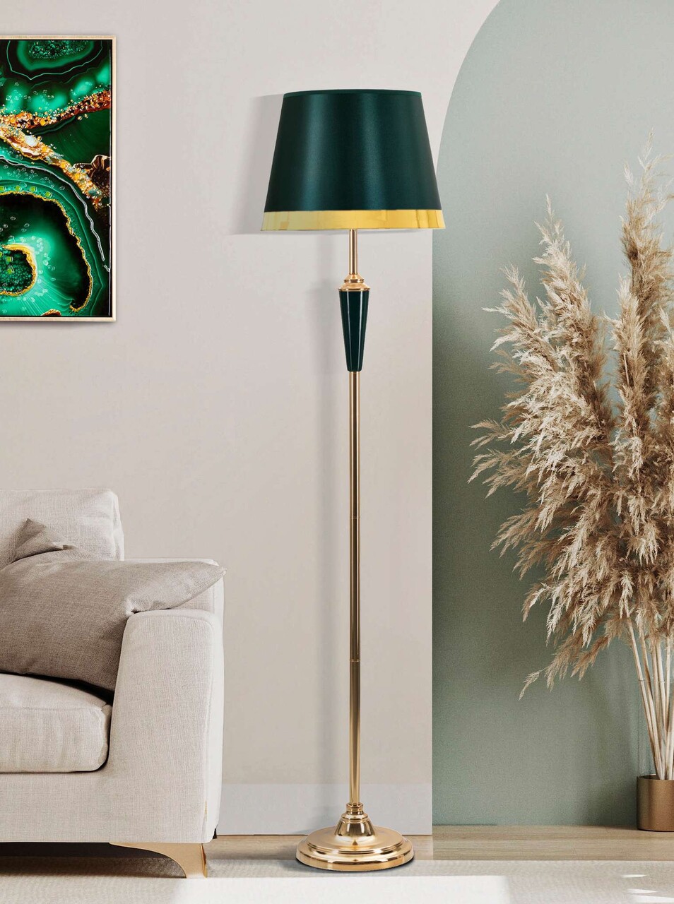 Lampadar Gron, Mauro Ferretti, 1 x E27, 40W, 40x170 cm, fier/textil, auriu/verde