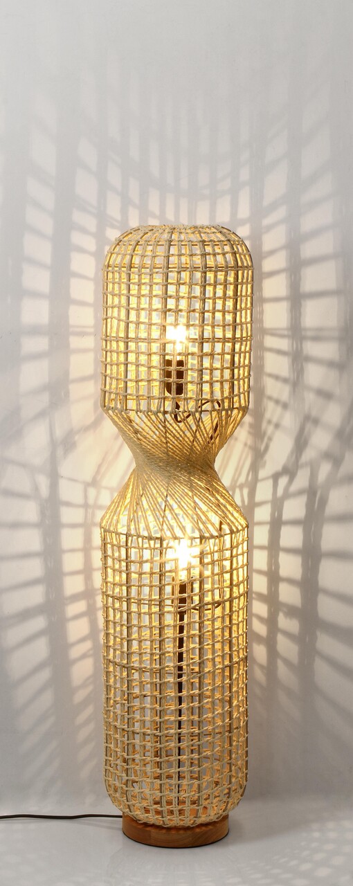 Lampadar Malabo, Bizzotto, D25x104 cm, 2 x E27, 40W, metal/hartie impletita, bej