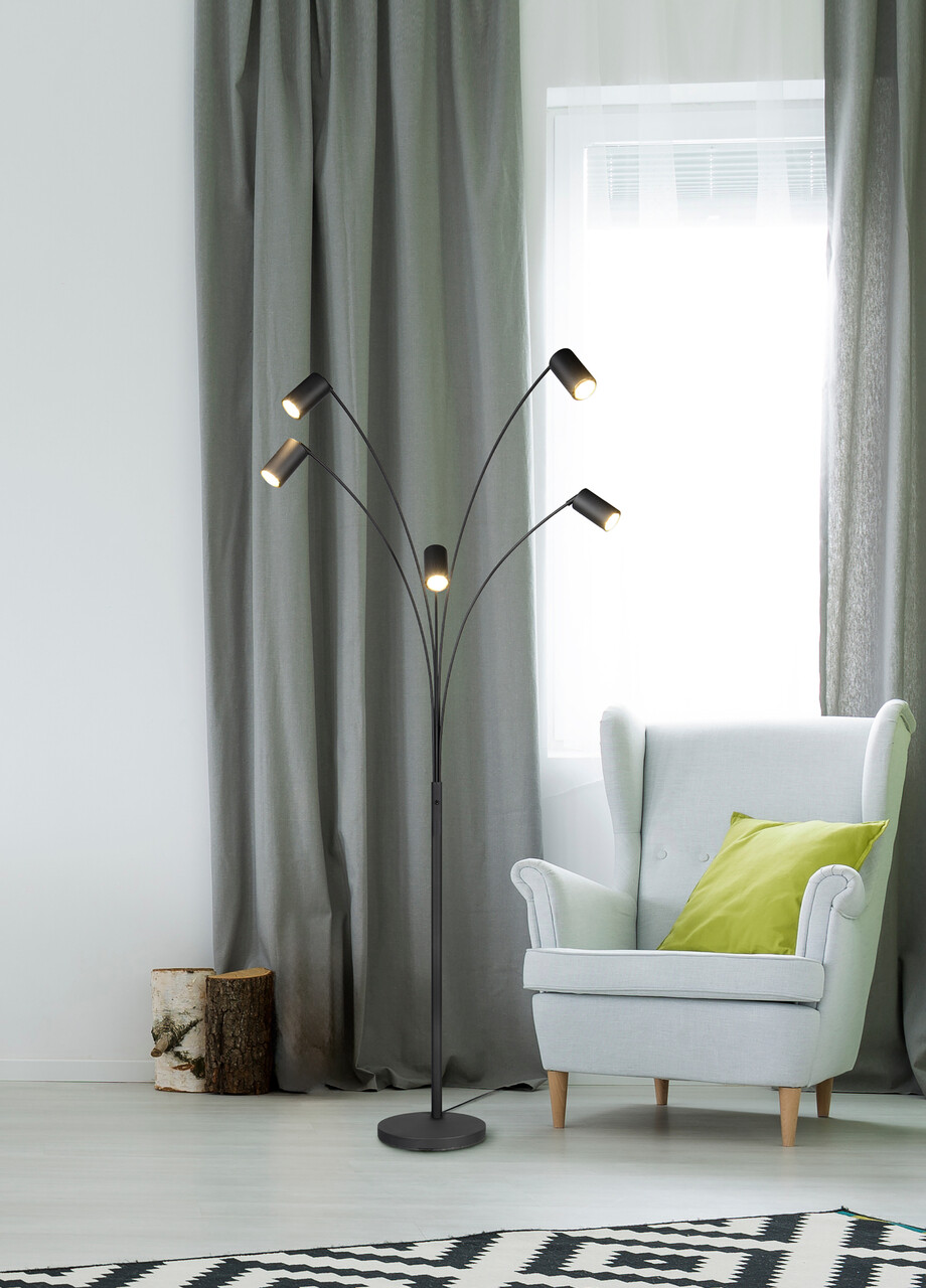 Lampadar Marley, TRIO, 80x55x200 cm, 10W, 5x GU10, metal, negru mat