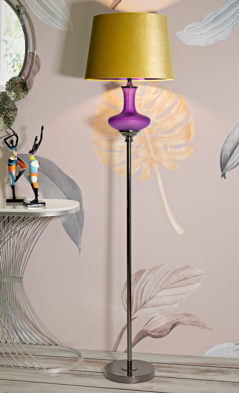 Lampadar Milva, Mauro Ferretti, 1 x E27, 40W, 40x167 cm, sticla/fier/catifea, mov/galben