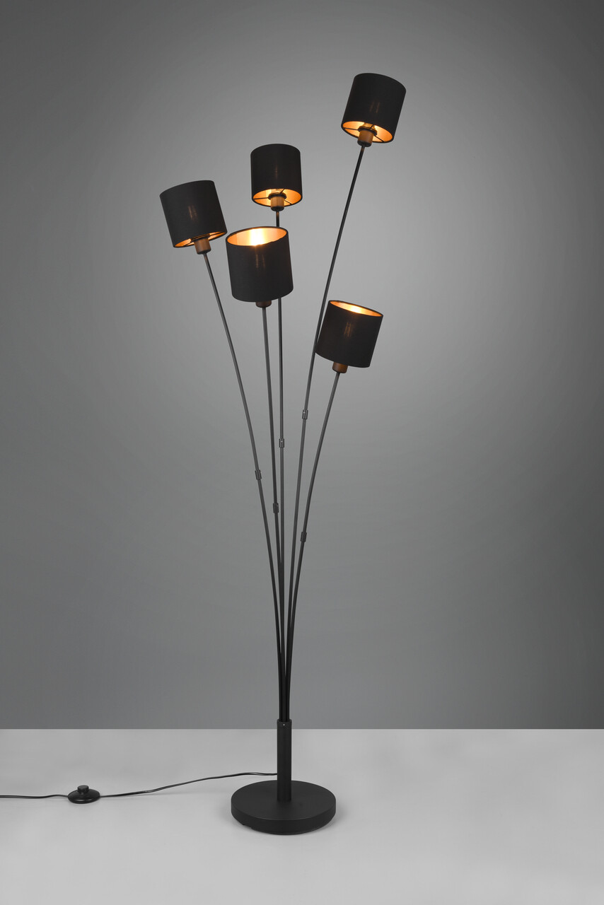 Lampadar Tommy, RL, 48x45.5x163 cm, 40W, 5x E14, metal/textil, negru mat